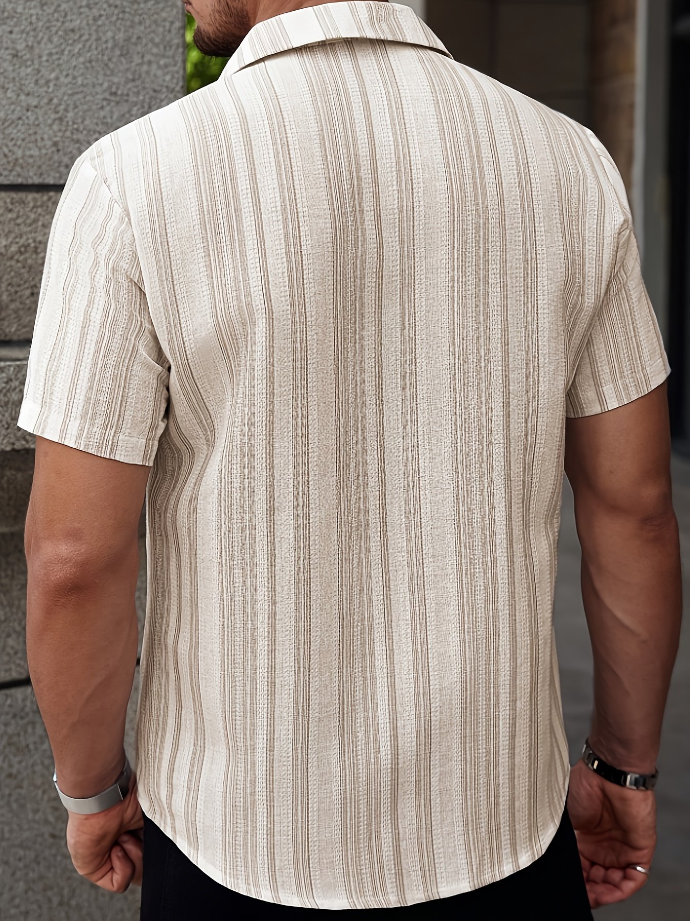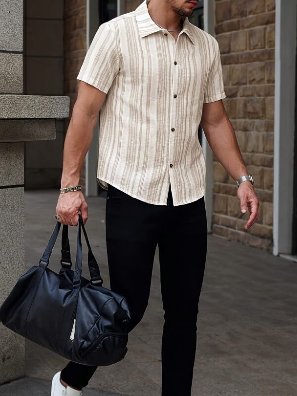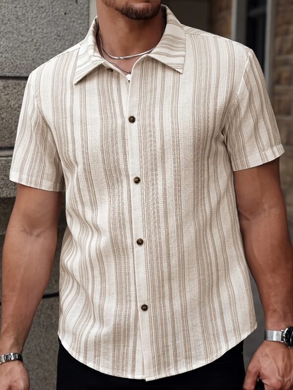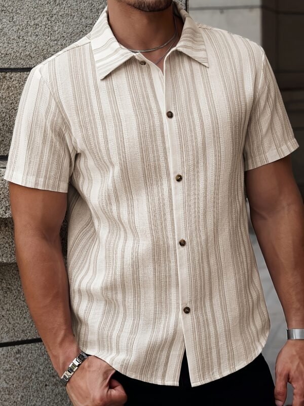 Chemise d’été à manches courtes pour hommes – Légère, boutonnée, col à rayures verticales, coupe régulière, chemise décontractée et semi-formelle pour la plage et le bureau