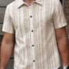 + Livraison de 12 à 17 joursLégère, boutonnée, col à rayures verticales, coupe régulière, chemise décontractée et semi-formelle pour la plage et le bureau