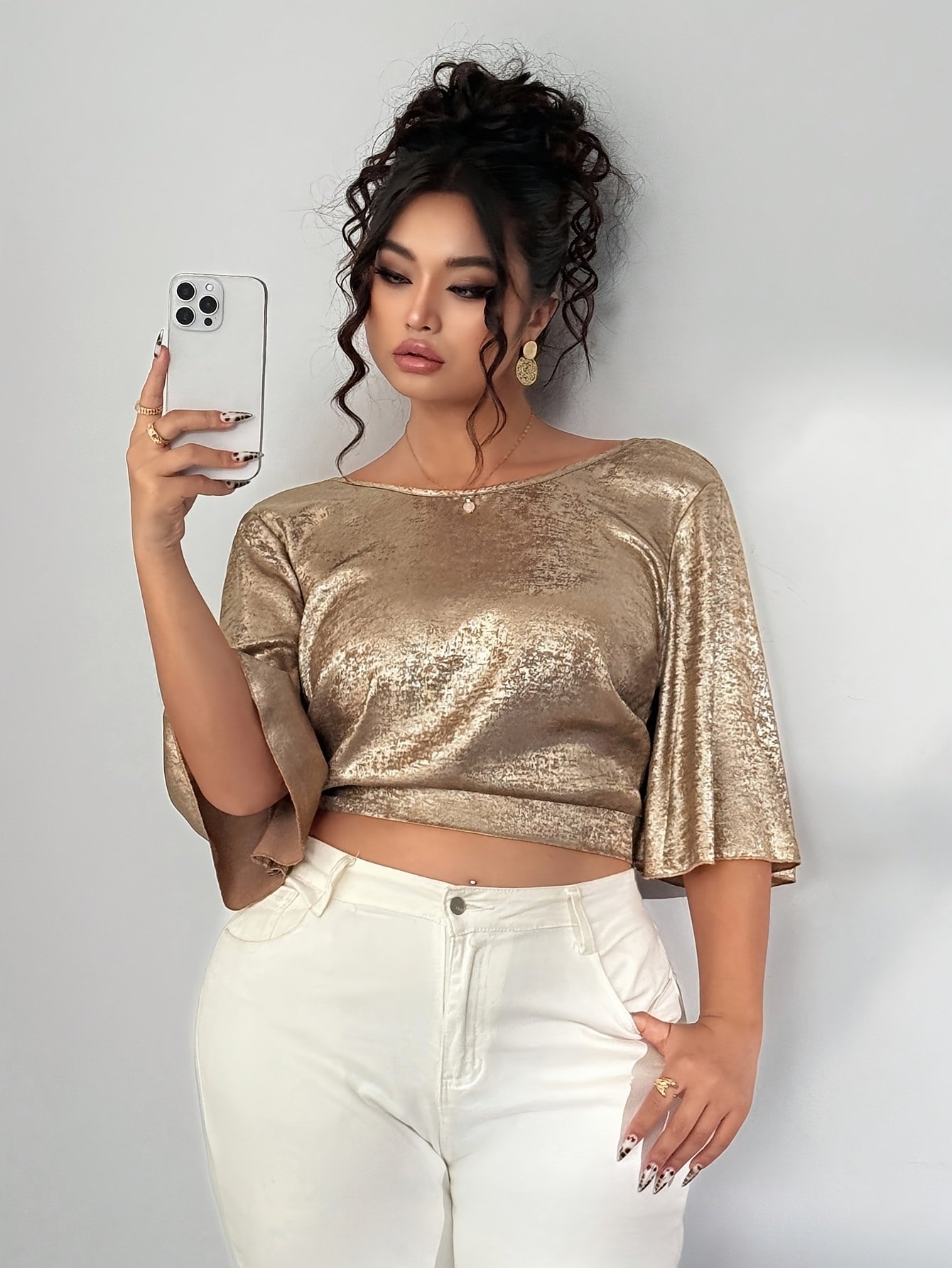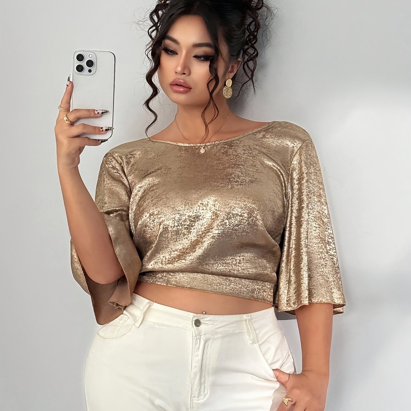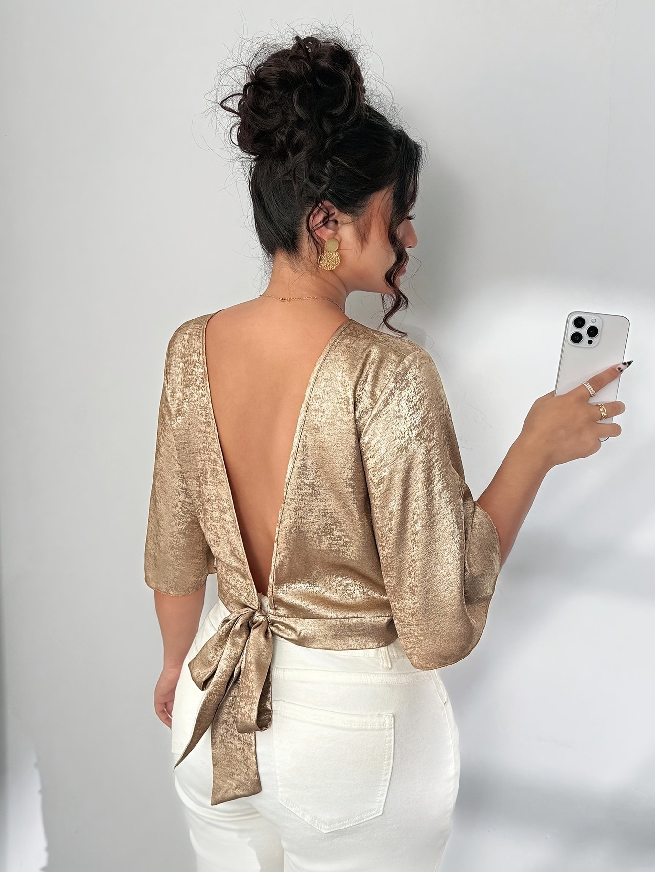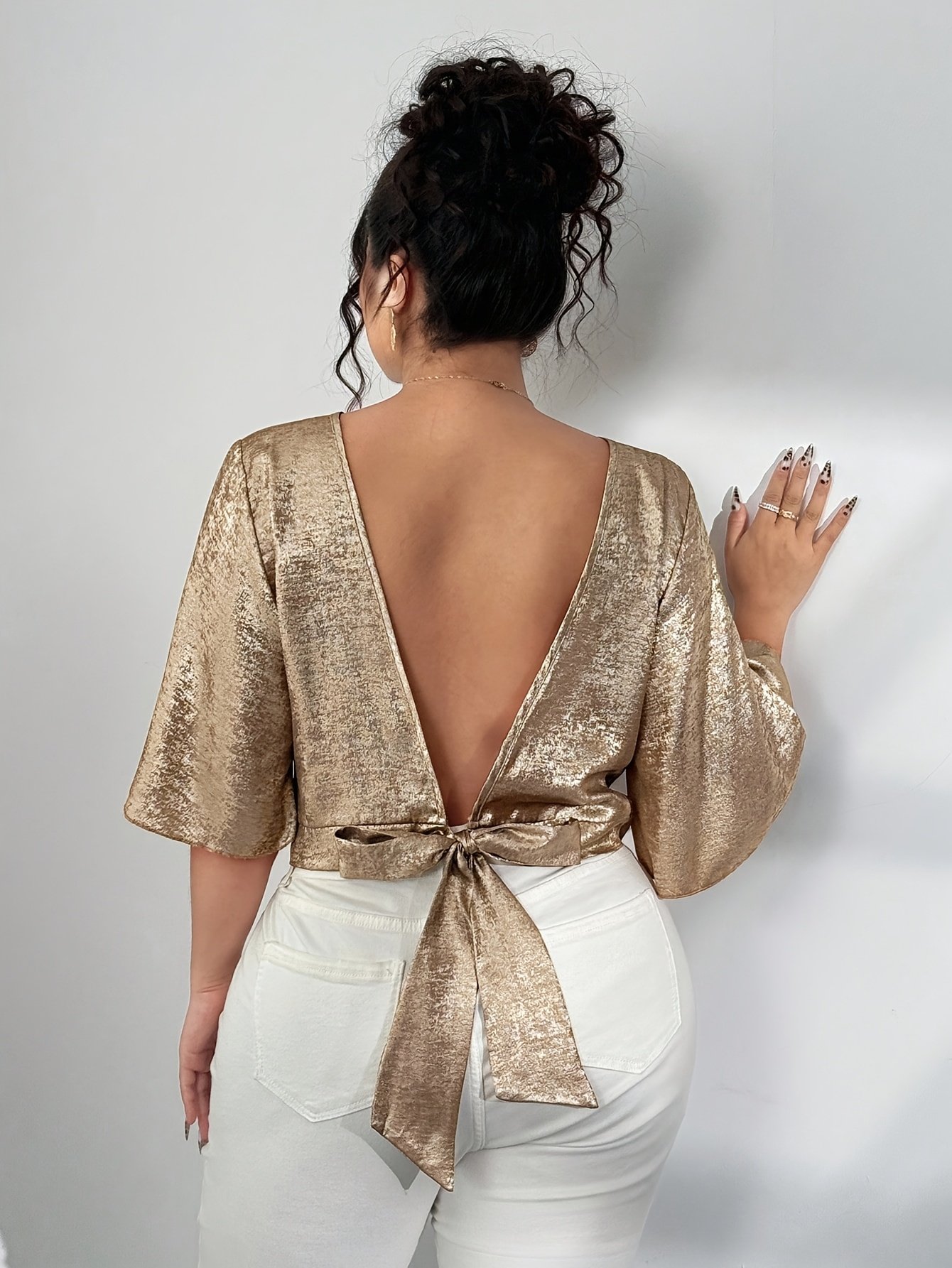 Chemise Élégante Décontractée à Col Rond et Bretelles Nouées, Style Vacances, Nouvelle Collection Printemps/Été, Velours Doré, Taille Grande, Style Européen et Américain