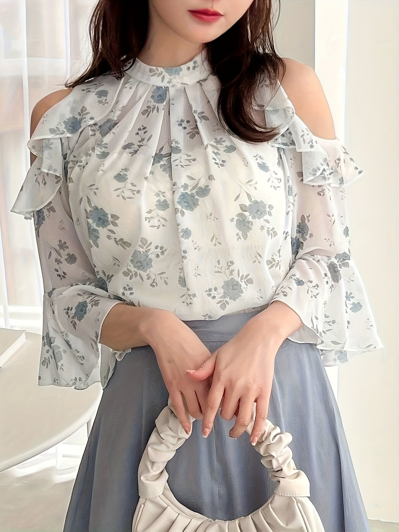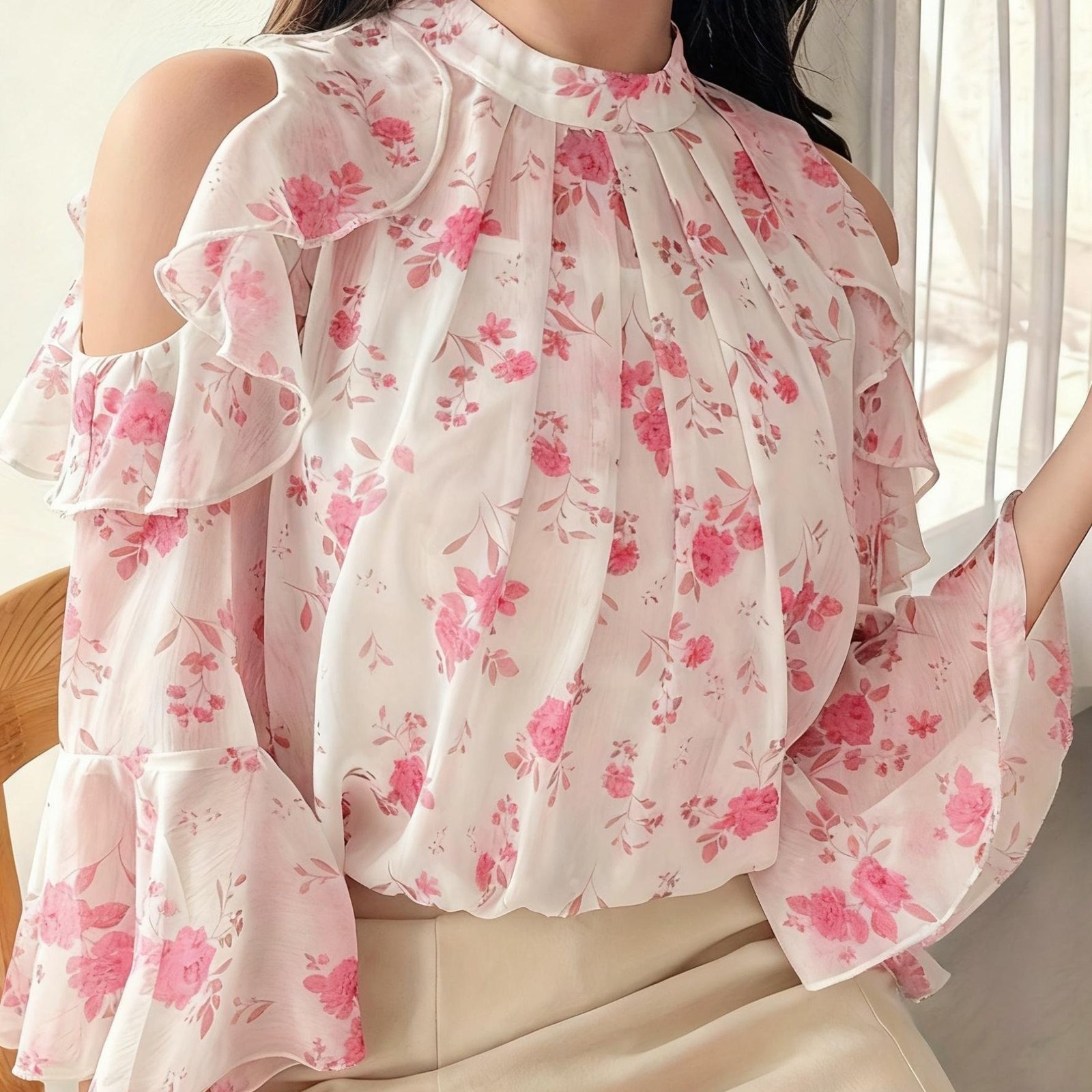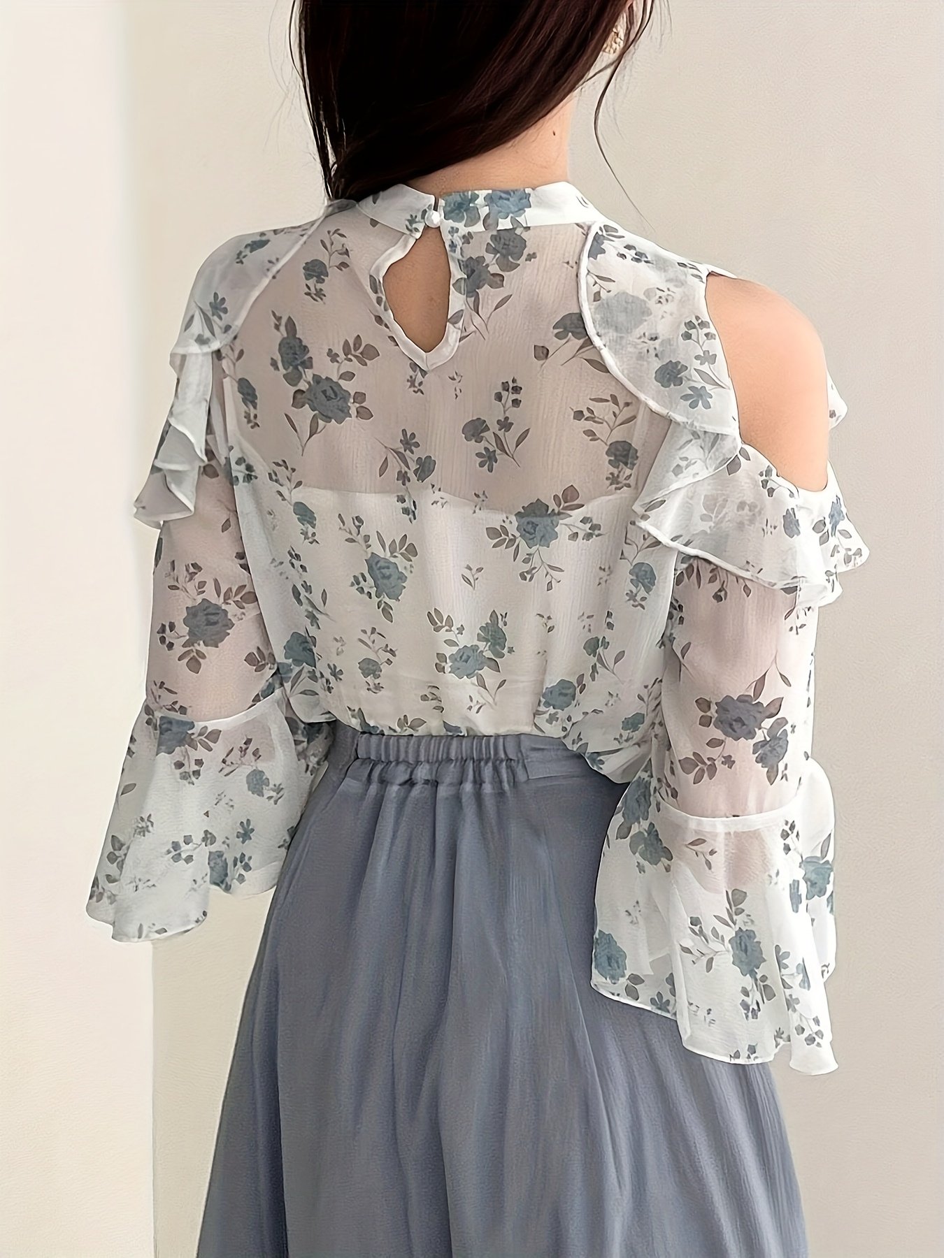 Chemise élégante pour femmes avec un joli imprimé floral et un design semi-transparent