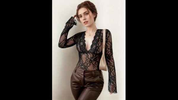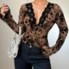 Chemise Femme Tendance Bestseller Sexy Rétro à Encolure Profonde en Dentelle