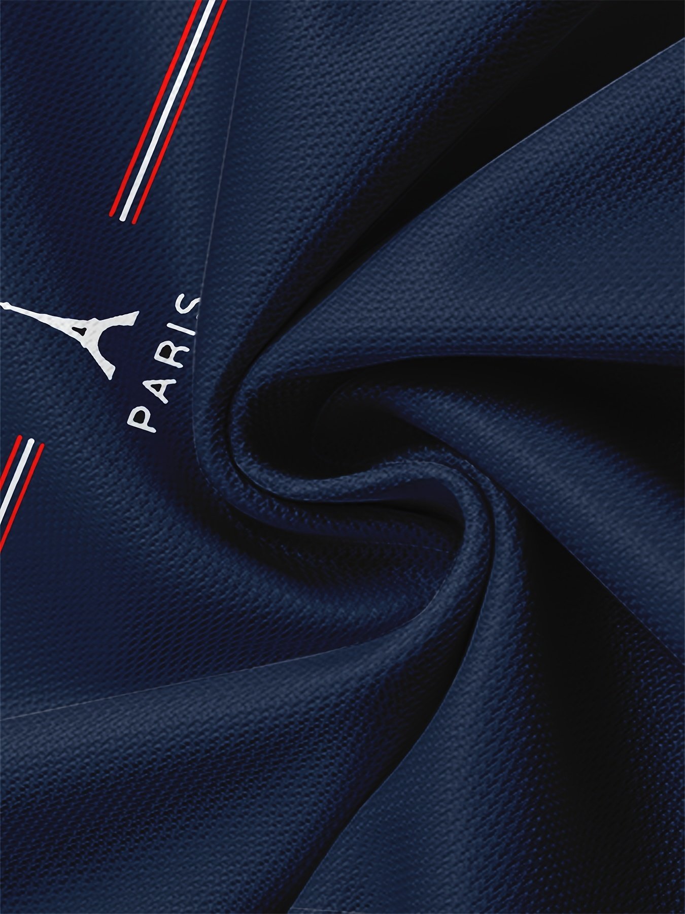 Chemise Homme à Imprimé 3D Paris – Manches Courtes, Bleu Marine avec Rayures Rouges et Blanches, Col Rond Coupe Regular, T-Shirt Décontracté Lavable en Machine, Confort Toutes Saisons, Style Urbain, Tee-shirt Durable, Haut Imprimé, Streetwear