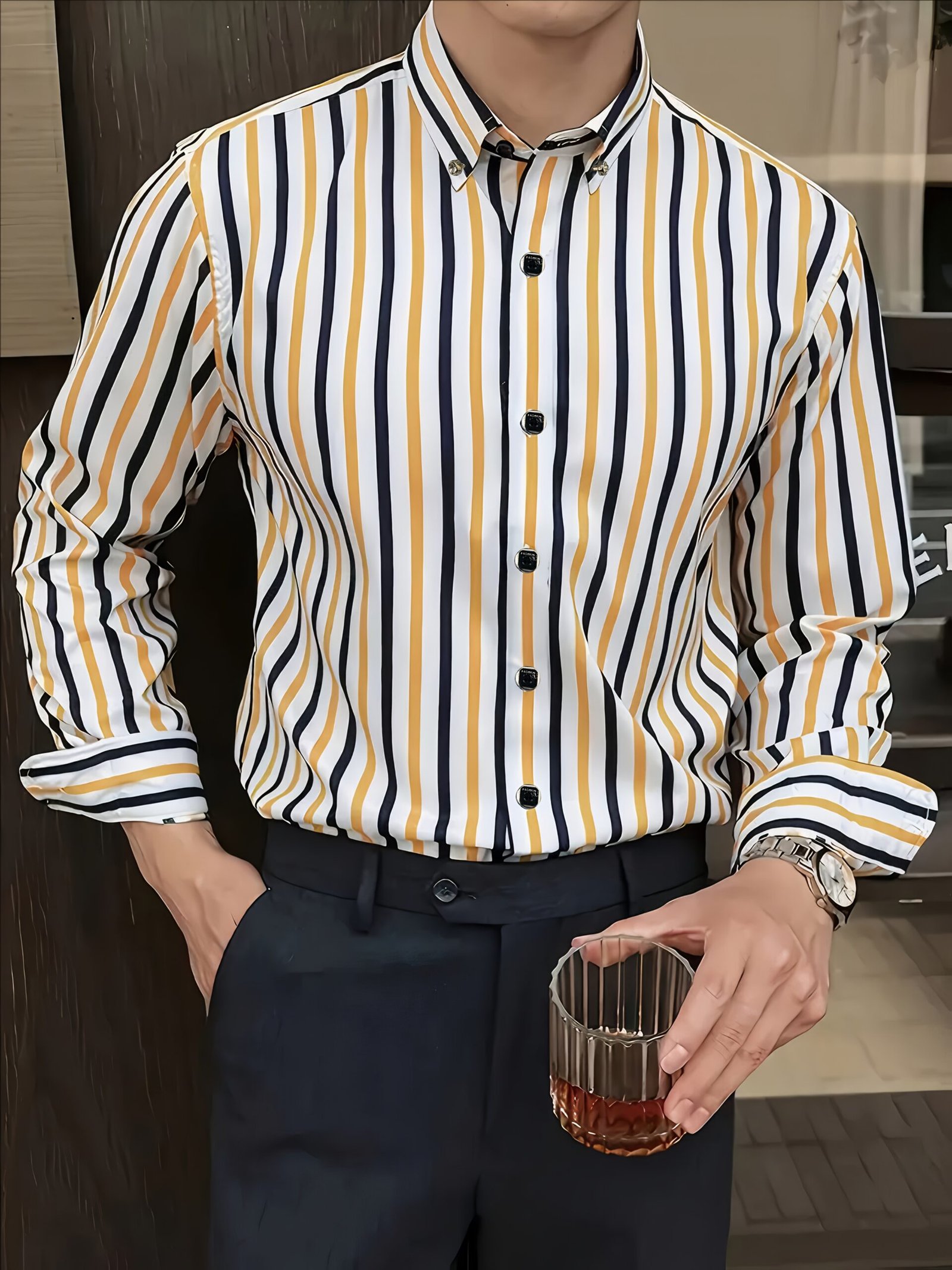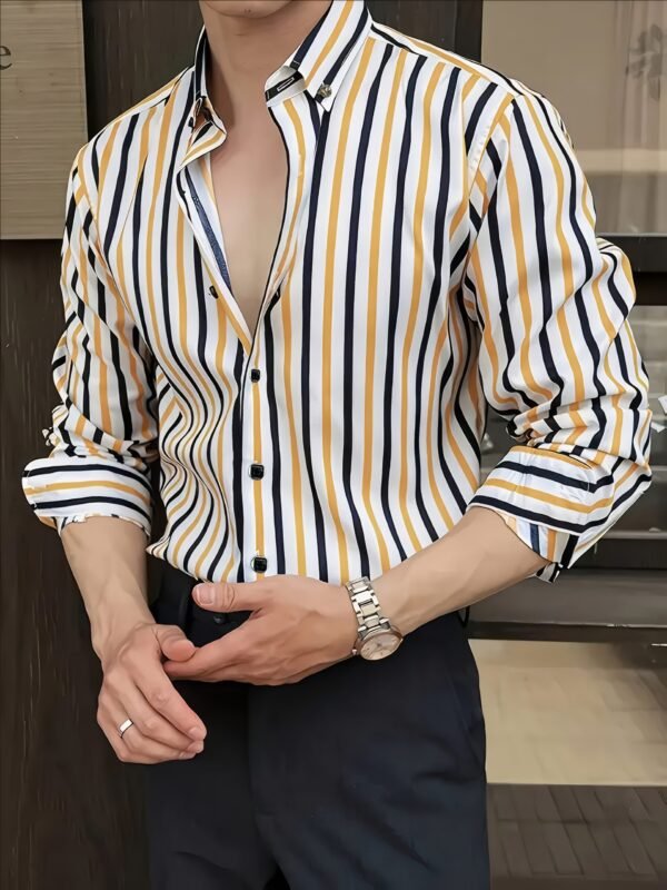 Chemise Homme à Rayures Manches Longues – Tissu Léger et Respirant pour l’Été, Col Pointu Classique & Boutonnage Devant, Coupe Régulière Lavable en Machine, Idéal pour Bureau et Événements Formels, Style Élégant pour Nouvel An, Six Pièces