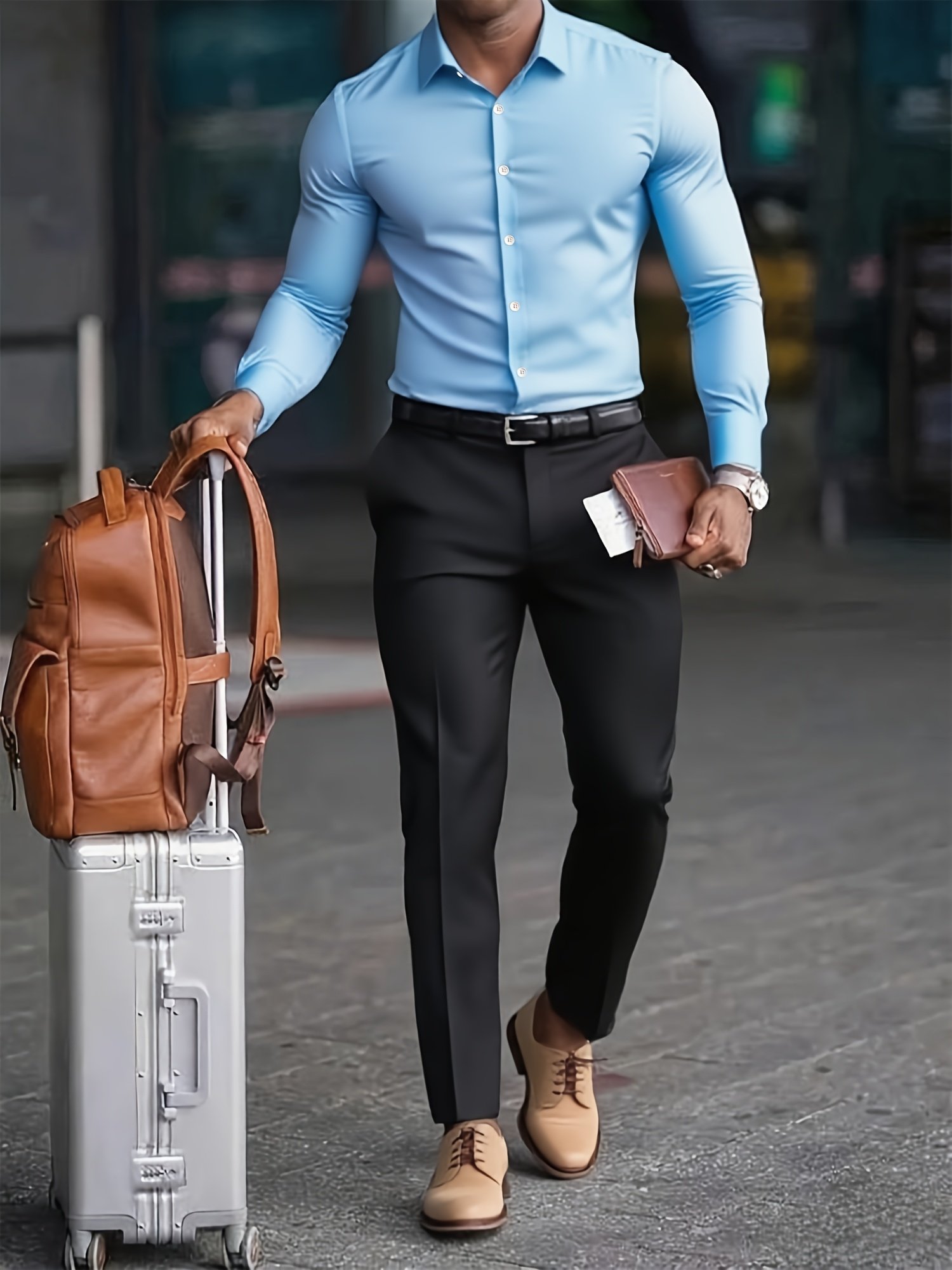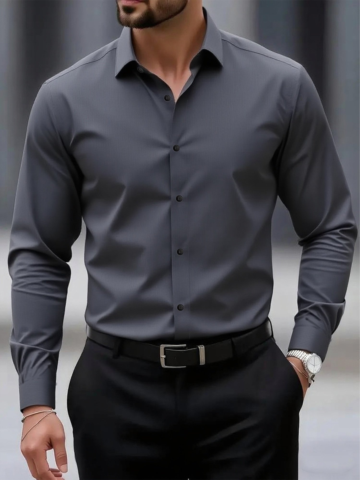 + Livraison de 12 à 17 joursCol Classique Boutonné, Tissu Non Extensible, Coupe Standard pour Bureau & Voyage