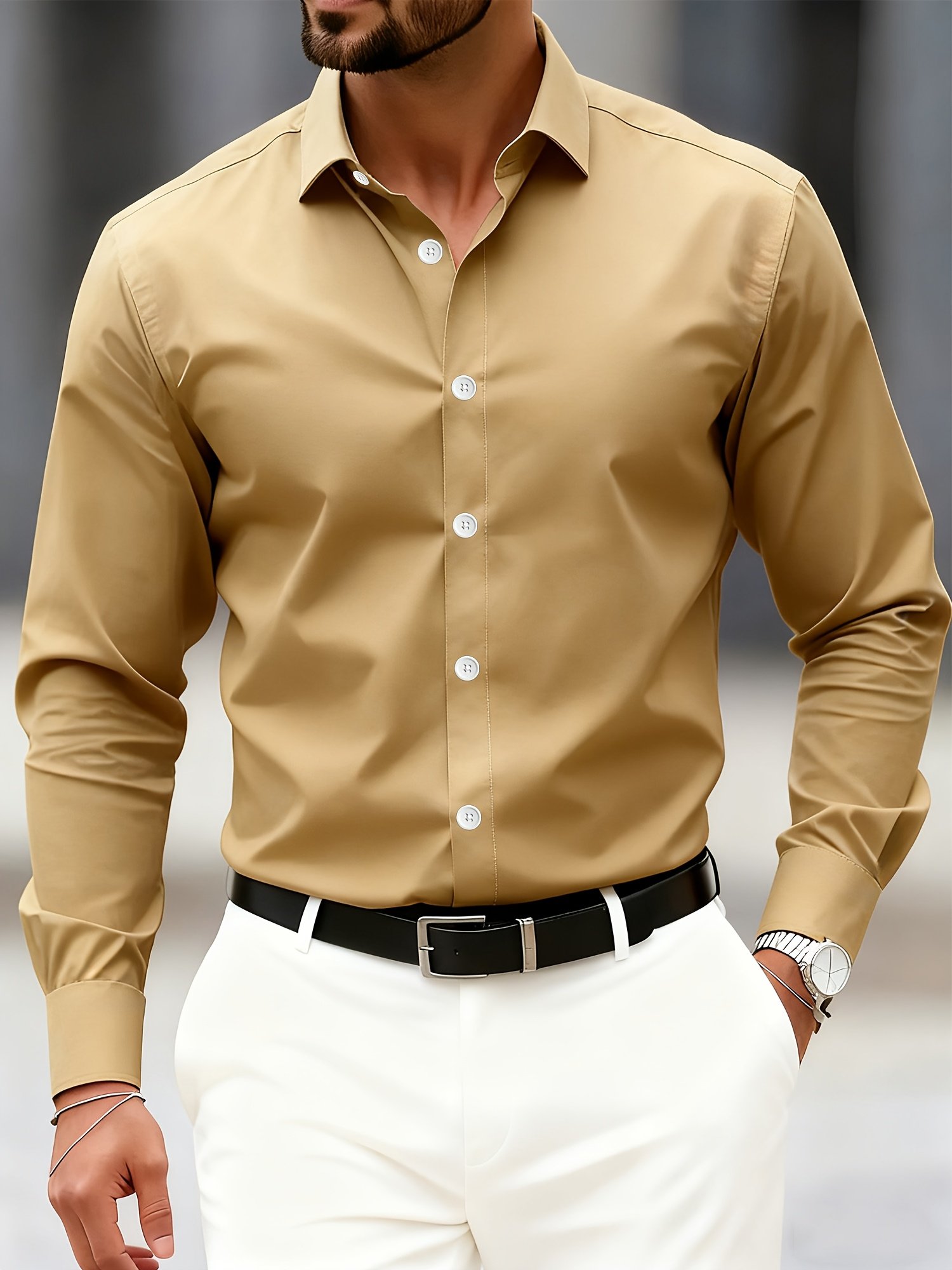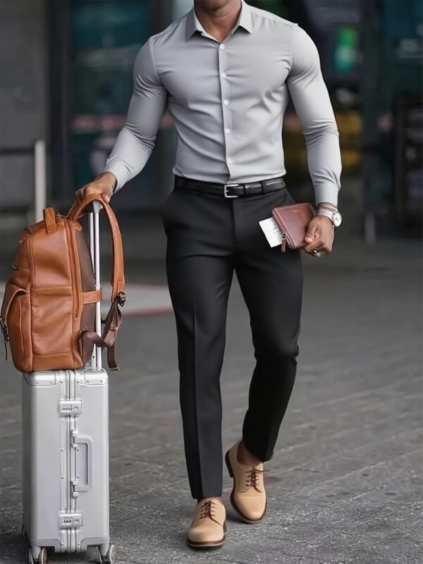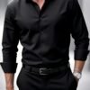 Chemise Longue Décontractée pour Homme – Col Classique Boutonné, Tissu Non Extensible, Coupe Standard pour Bureau & Voyage, Vêtement Polyvalent Toutes Saisons, Tenue Professionnelle, Design Élégant, Construction Durable, Haut Tendance, Vêtement d’Entreprise