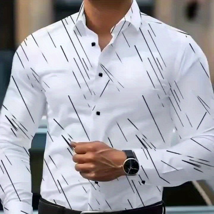 Chemise slim fit à rayures pour homme – Manches longues élégantes, boutonnée avec poche poitrine, parfaite pour adulte, portée toute l’année, tenue décontractée | Chemise slim fit | Regard formel élégant