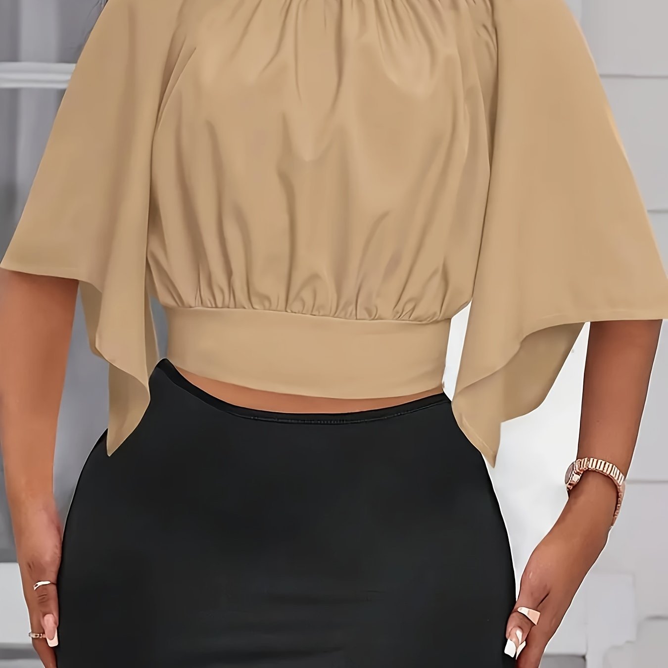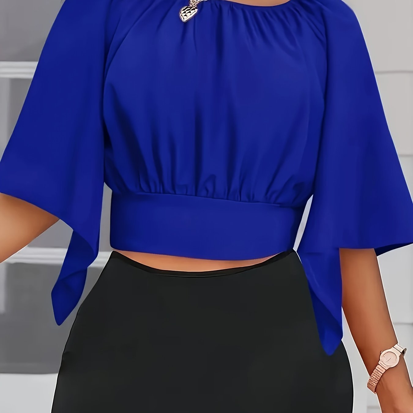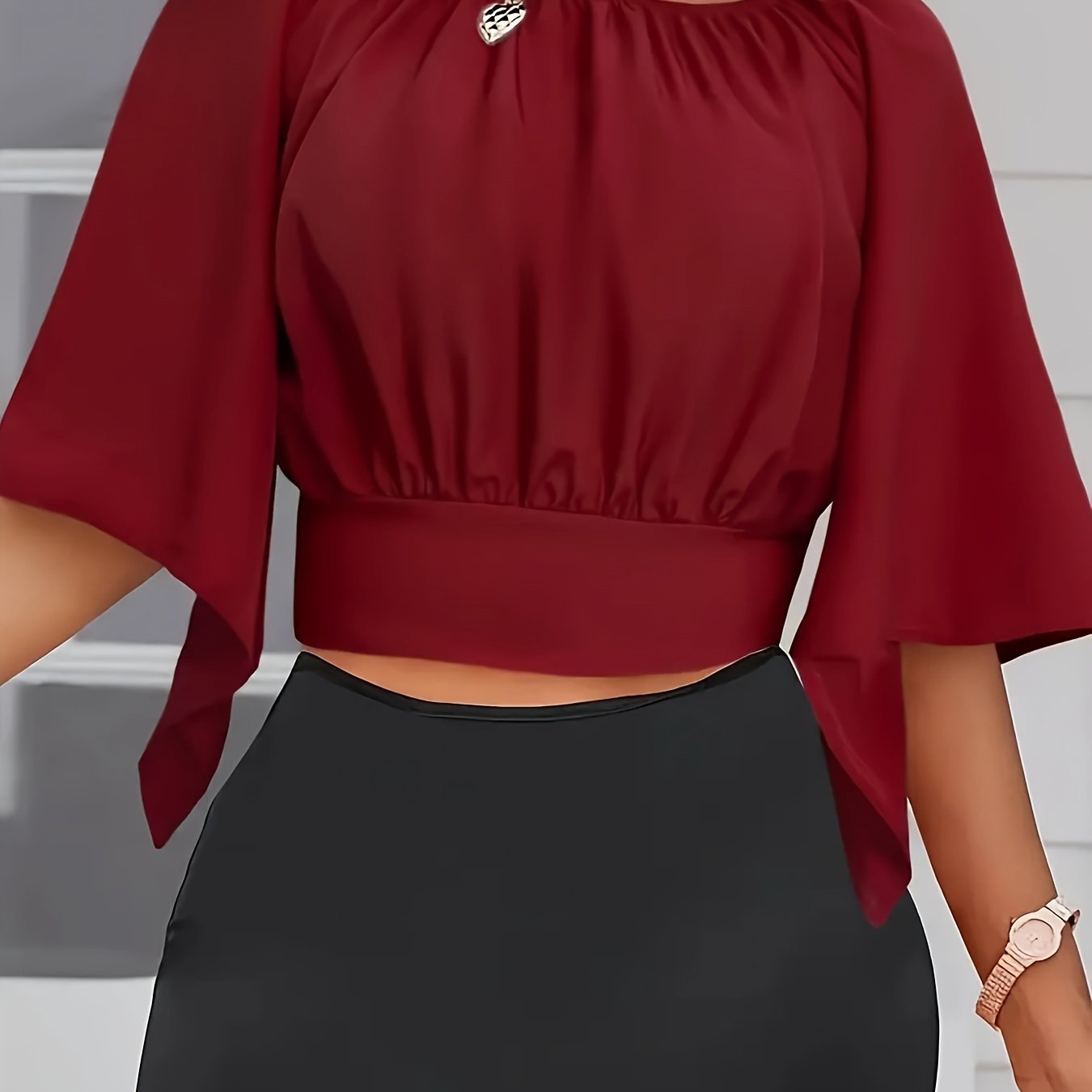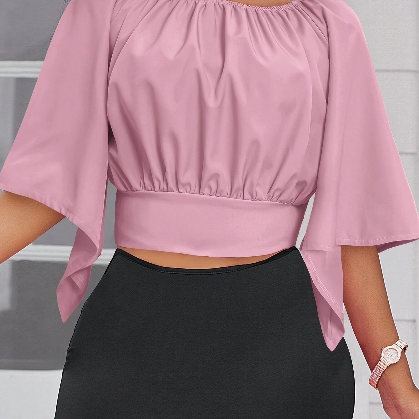Chemisier froncé à nouer, élégant et couleur unie pour le printemps et l’été – Vêtement pour femmes