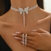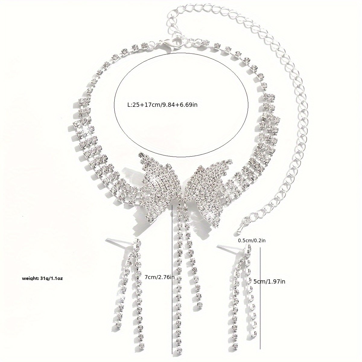 Collier Court à Franges Papillon + 1 Paire de Boucles d’Oreilles
