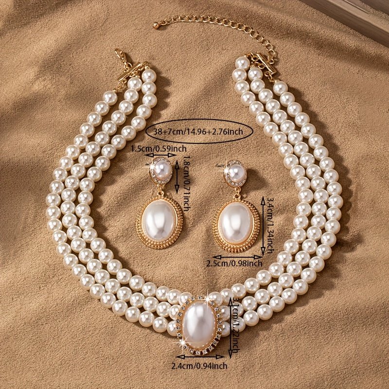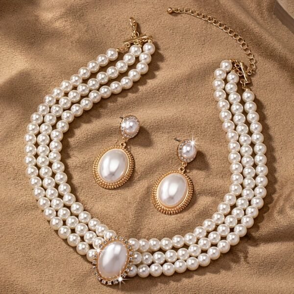 + Livraison de 12 à 17 joursCollier en perles imitation élégant et boucles d’oreilles pendantes assorties – Ensemble pour femmes