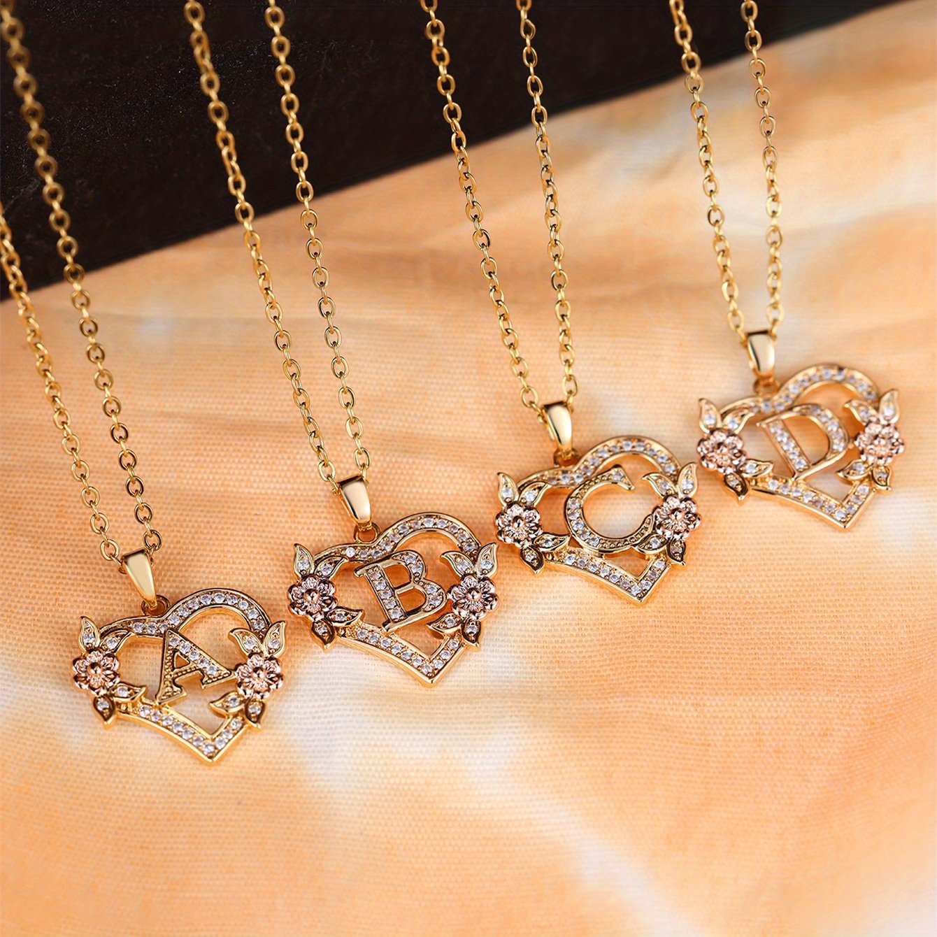 Collier Pendentif Vintage Élégant en Forme de Cœur avec Motif Rose A-Z