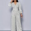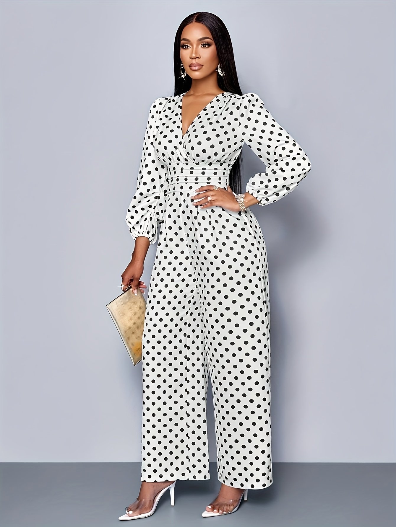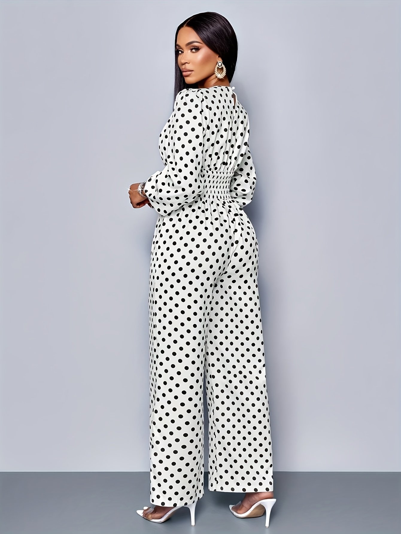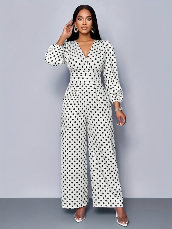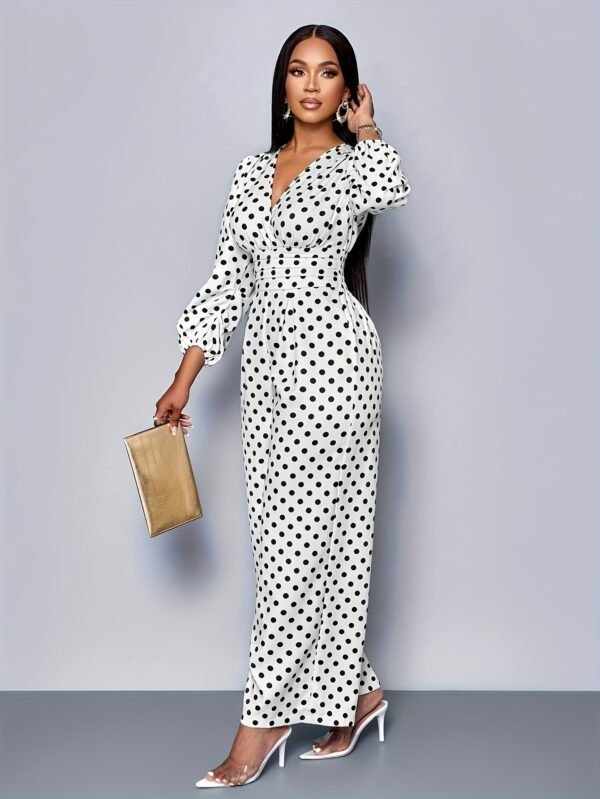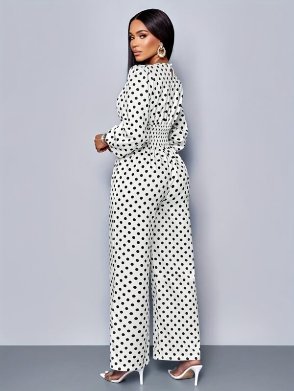 Combinaison élégante à pois | Col rond, détail froncé