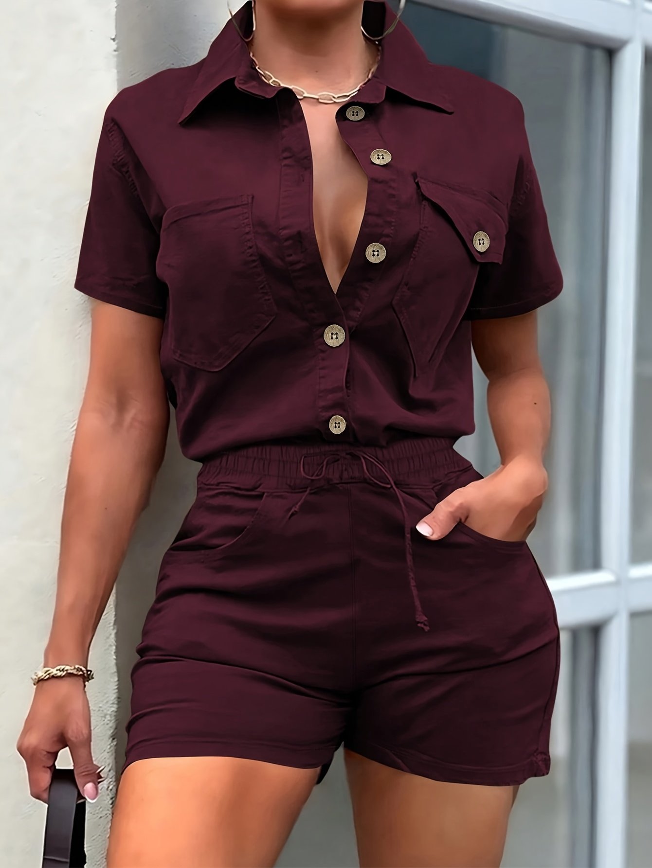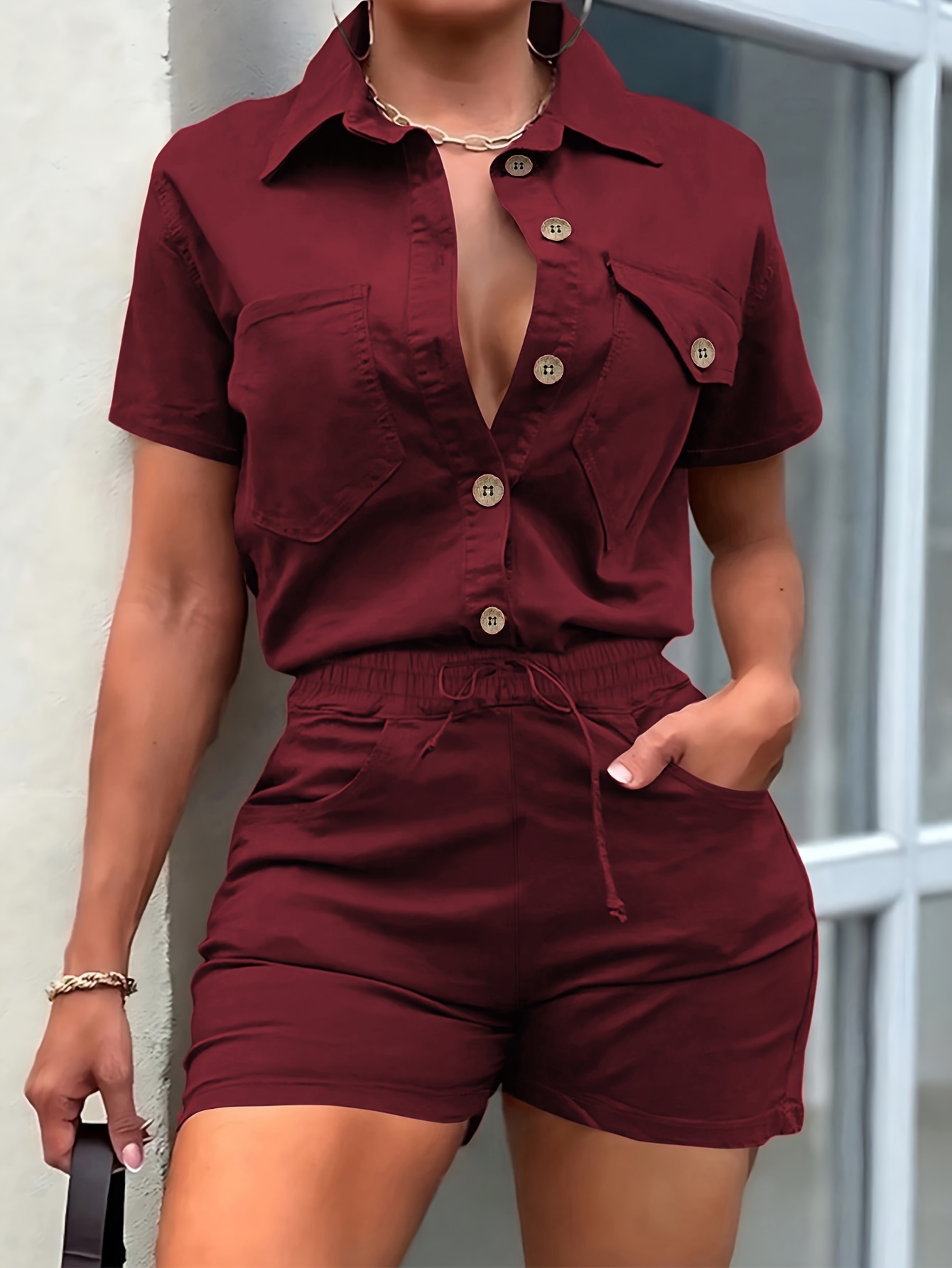 Combinaison élégante avec ceinture ajustable – Salopette à manches courtes