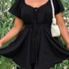 Combinaison noire grande taille avec double couche, taille élastique