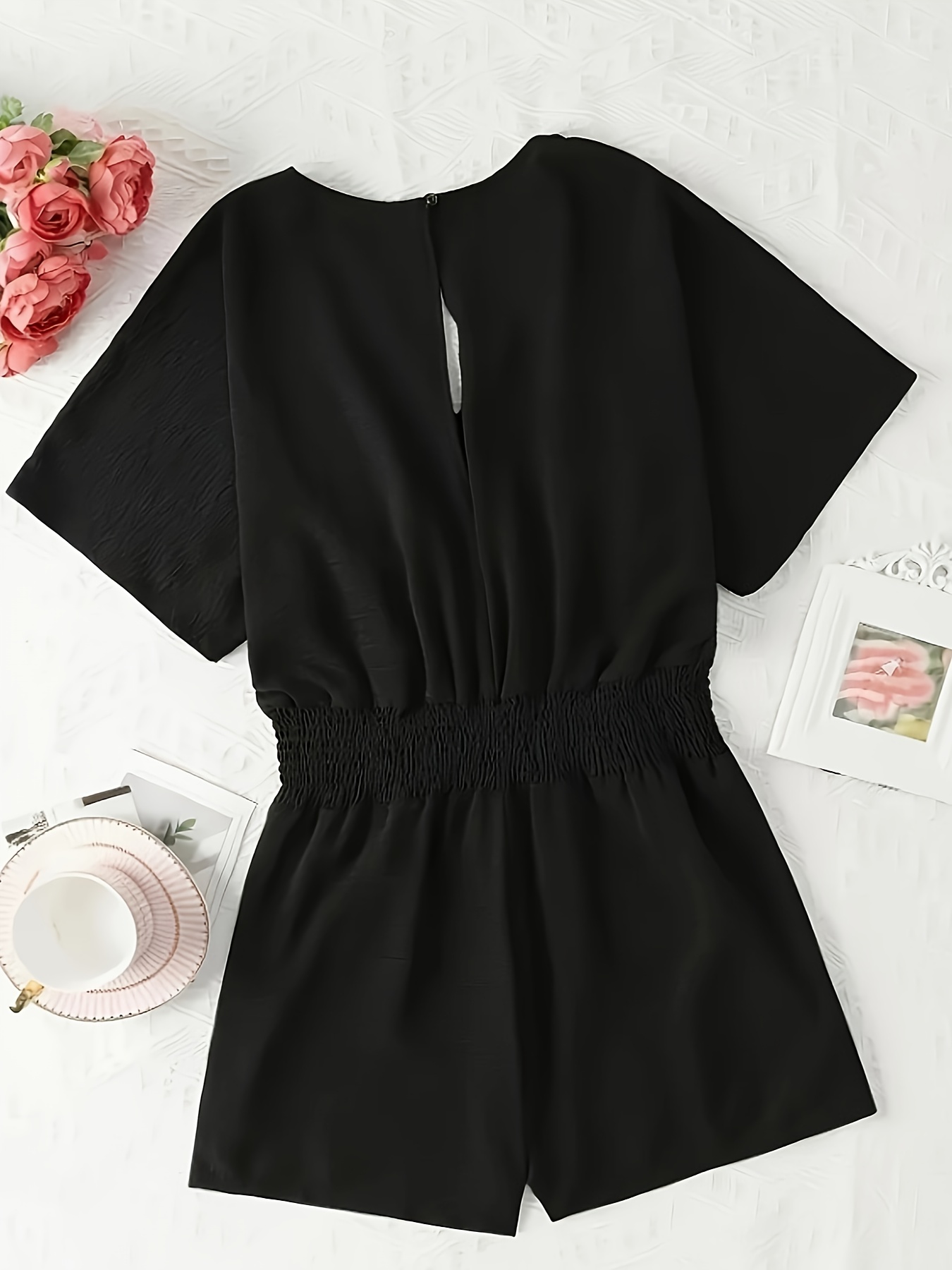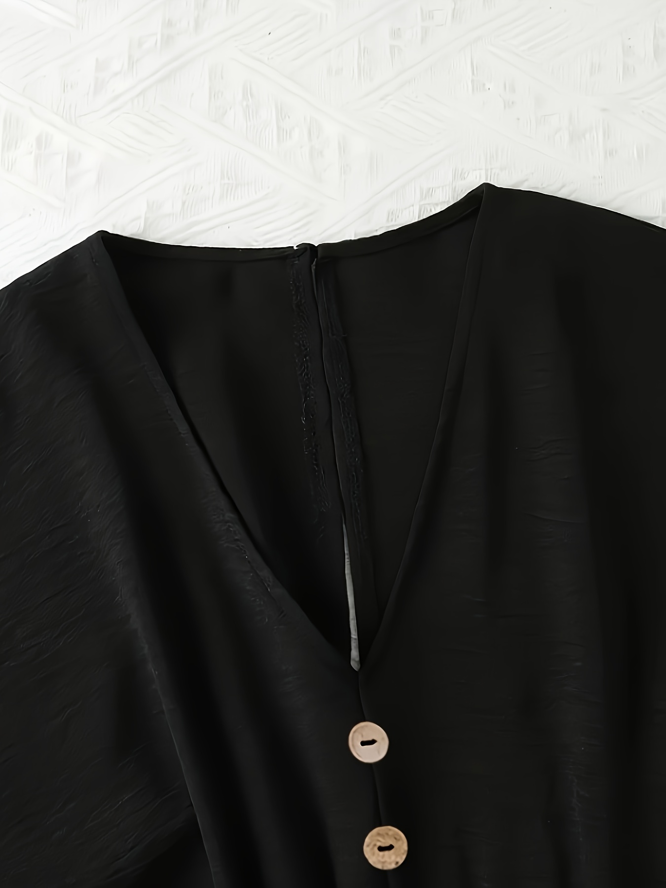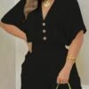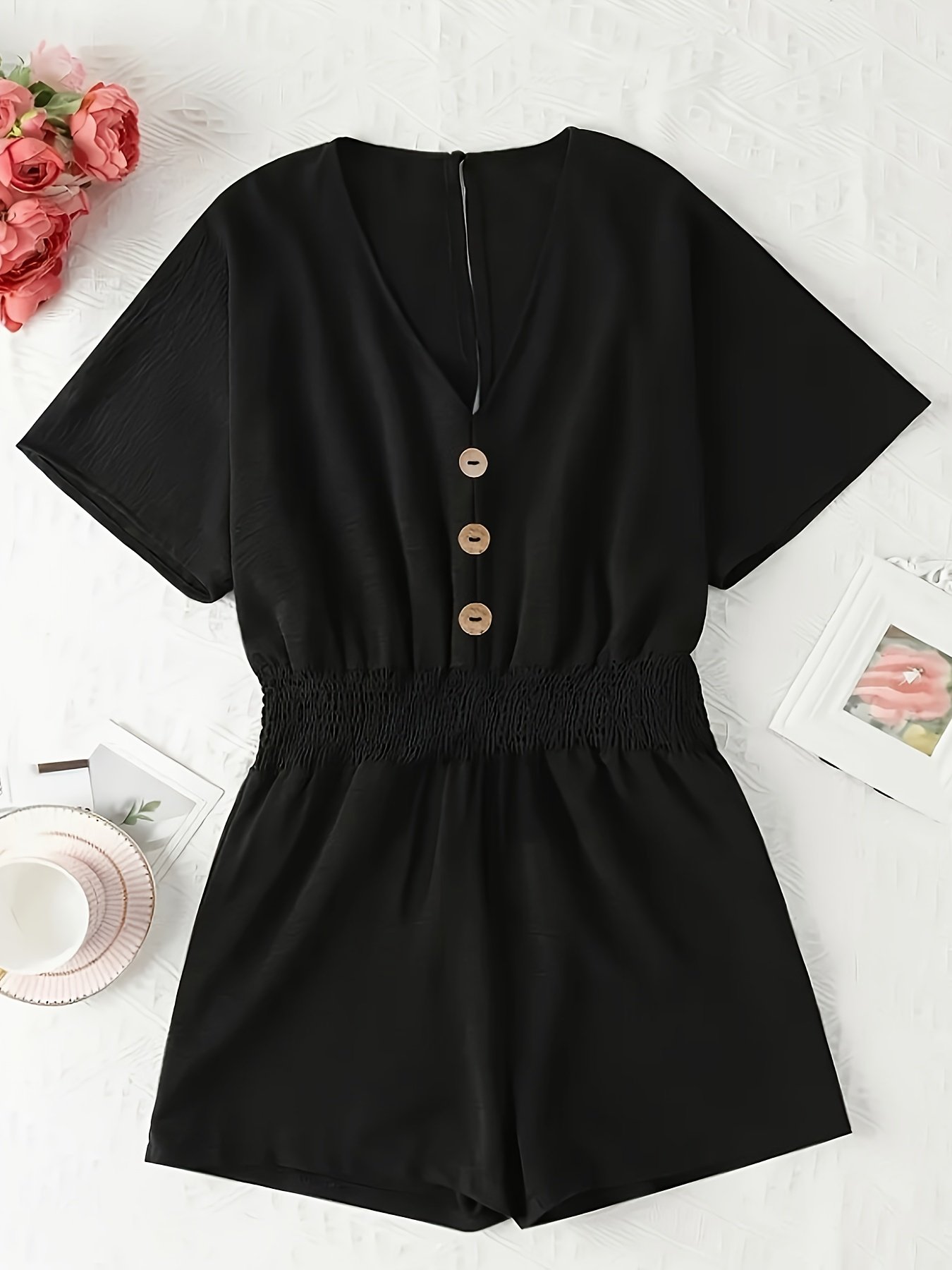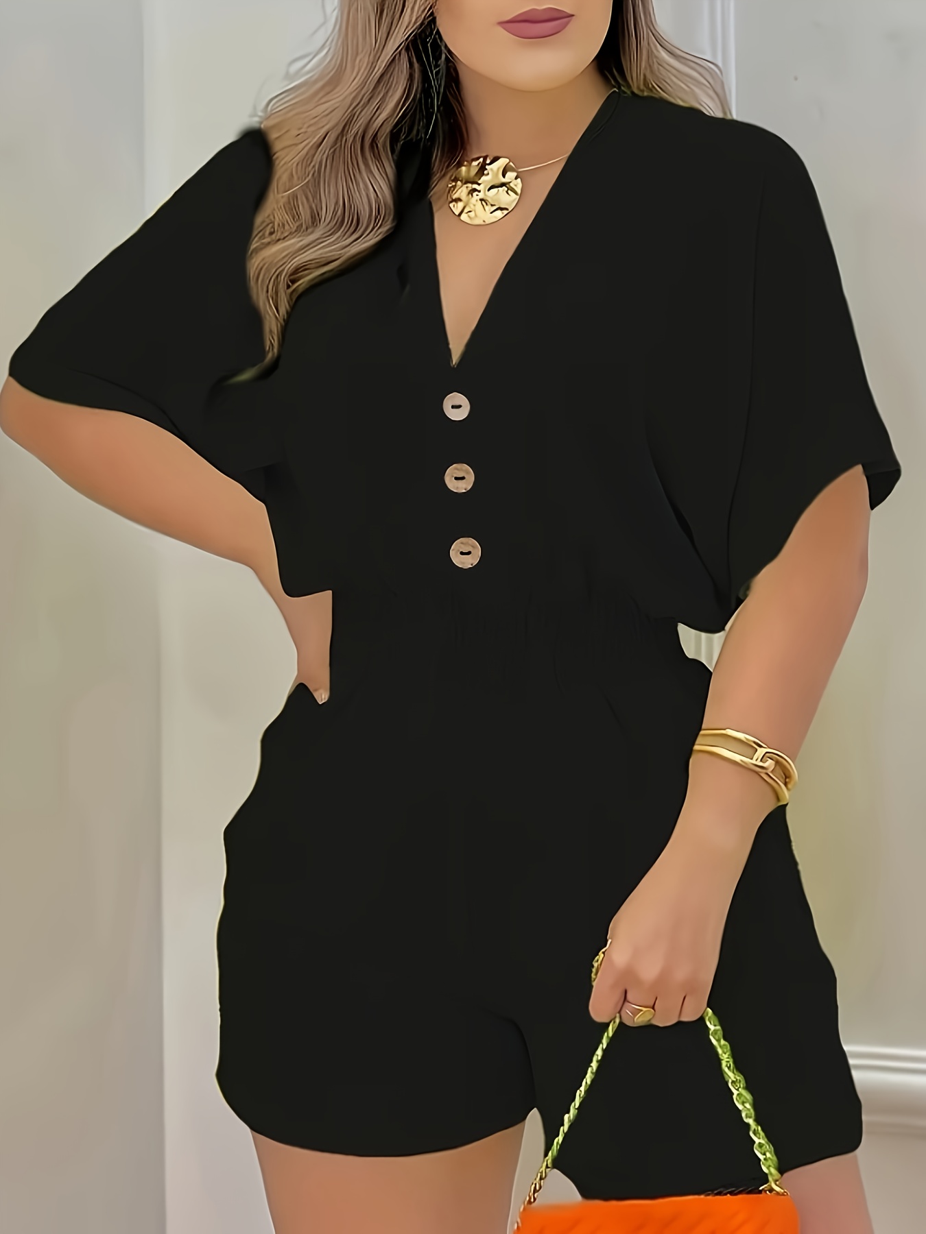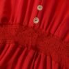 Combinaison Rouge Unie à Col en V avec Boutons et Manches Reversibles