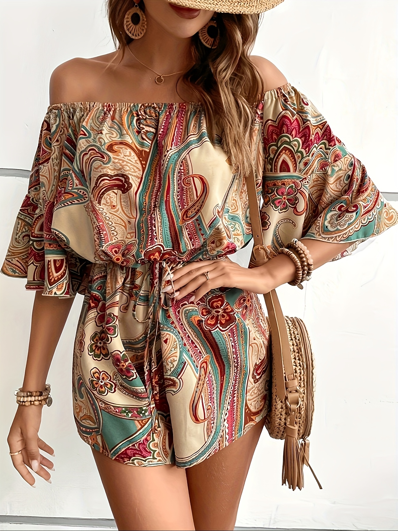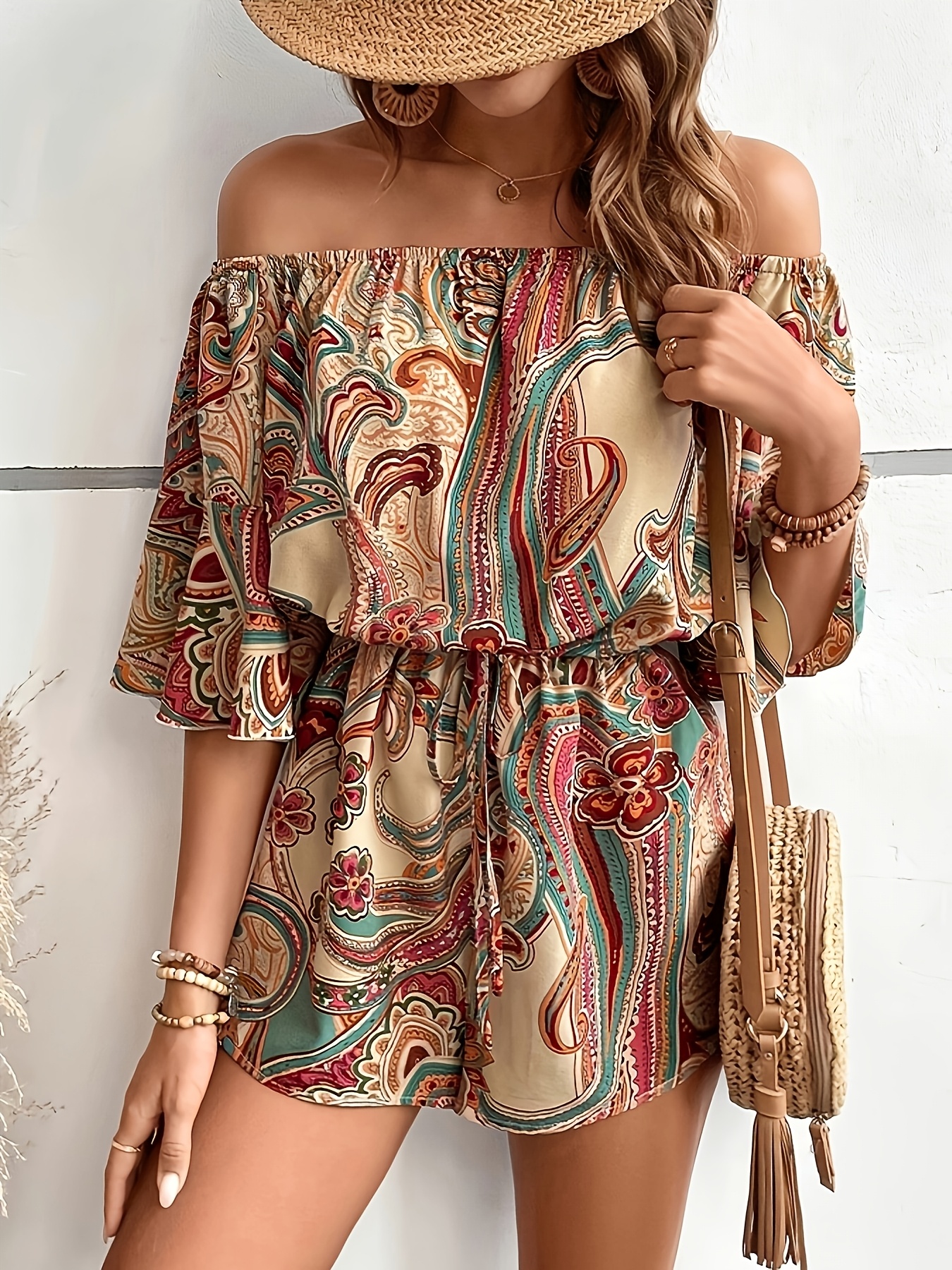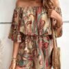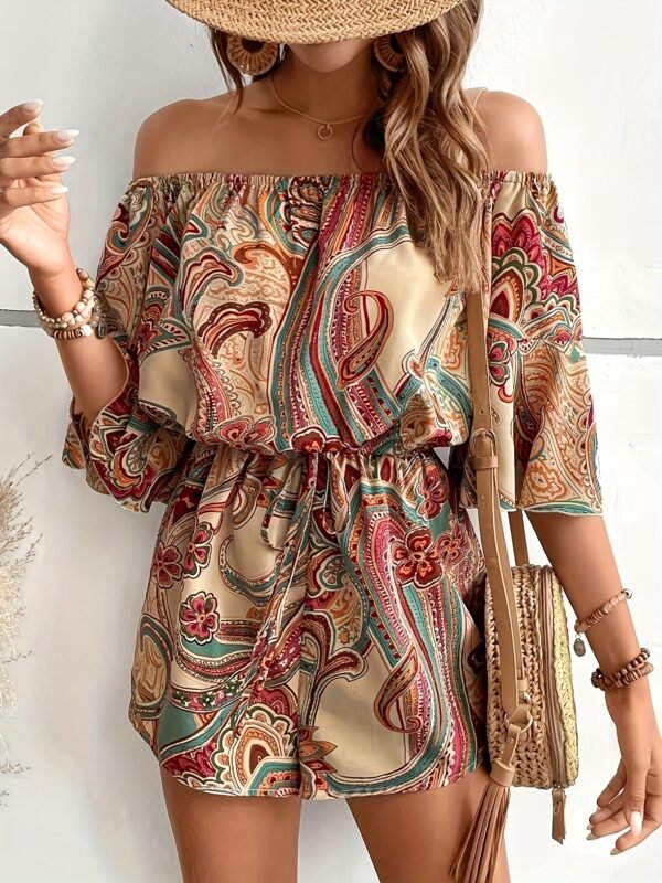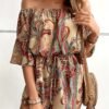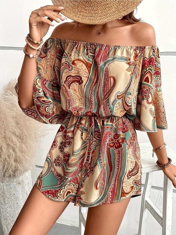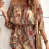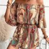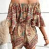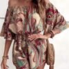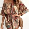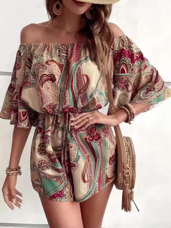 Combinaison sans épaules imprimée fleurs avec manches bouillonnées