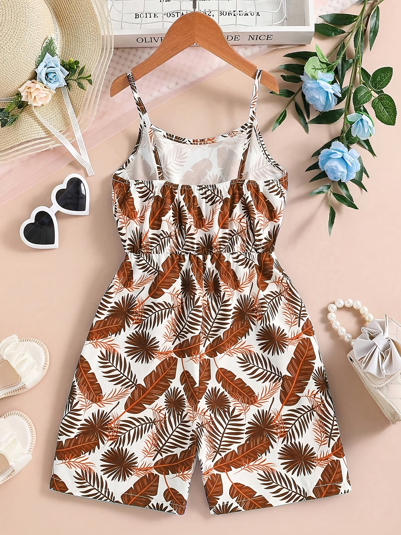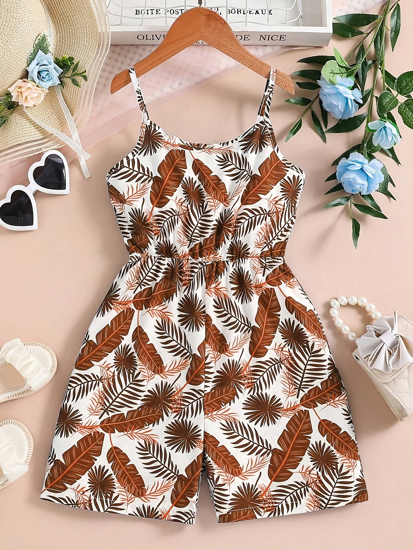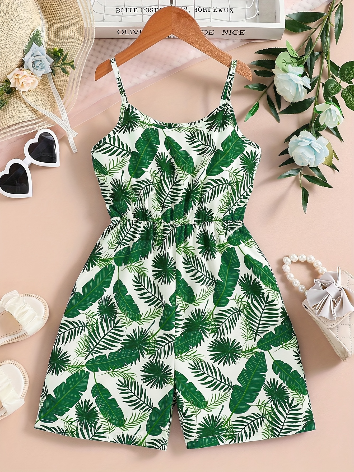 Combinaison sans manches à imprimé tropical pour filles