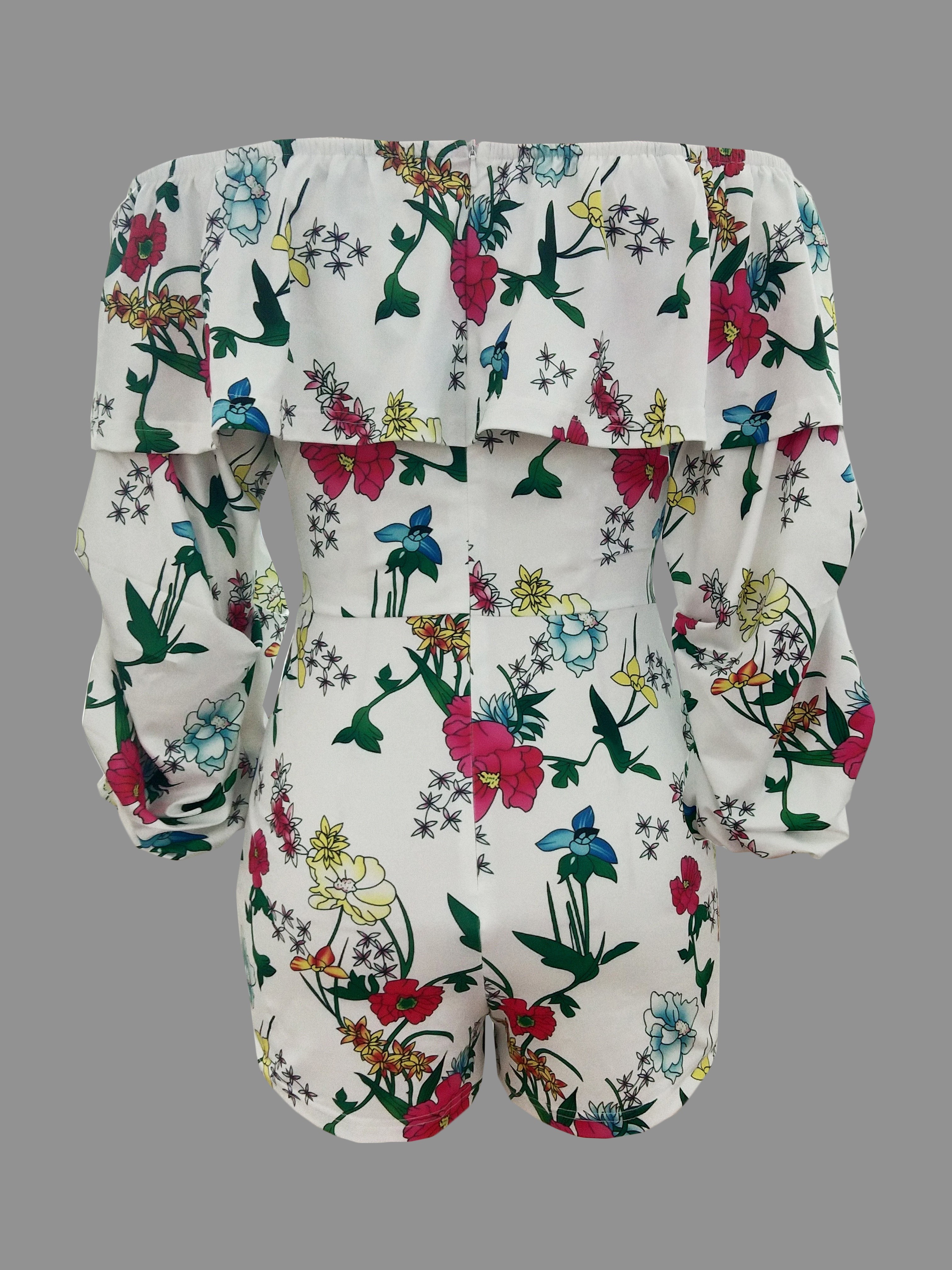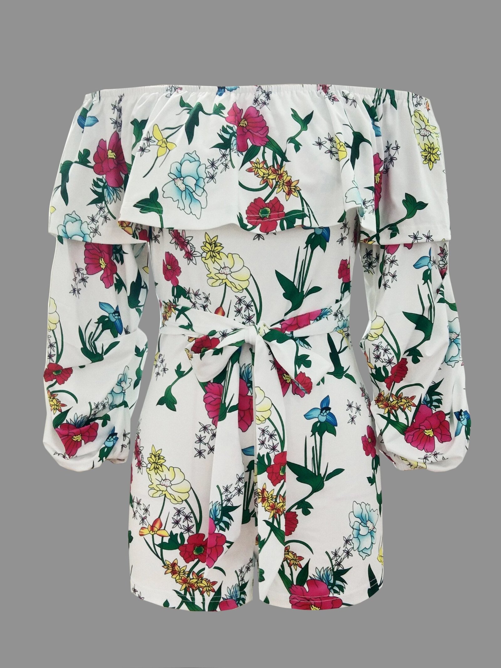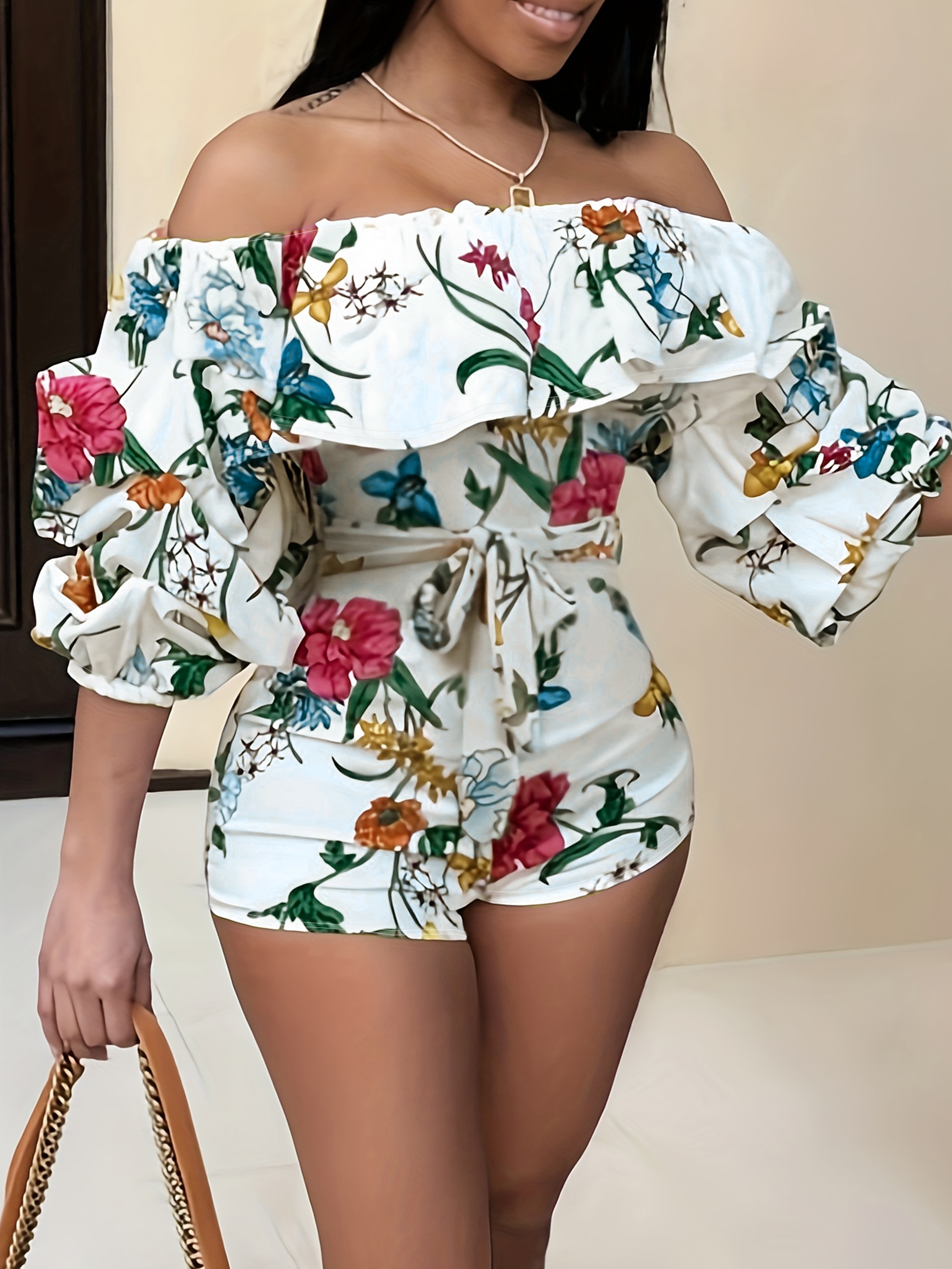 Combinaison-Short Imprimée Fleurie, Dos Nu Élégant à Ceinture
