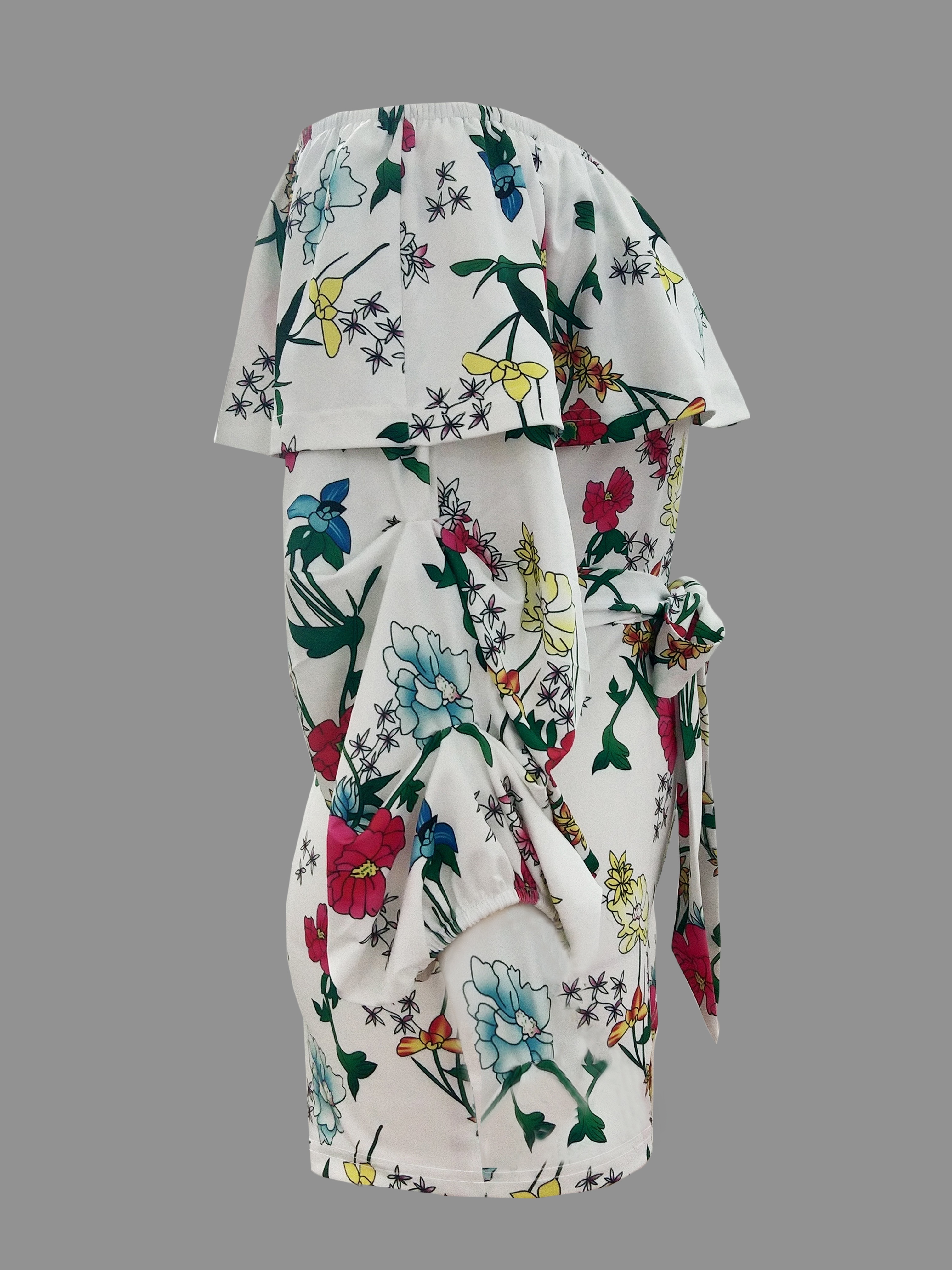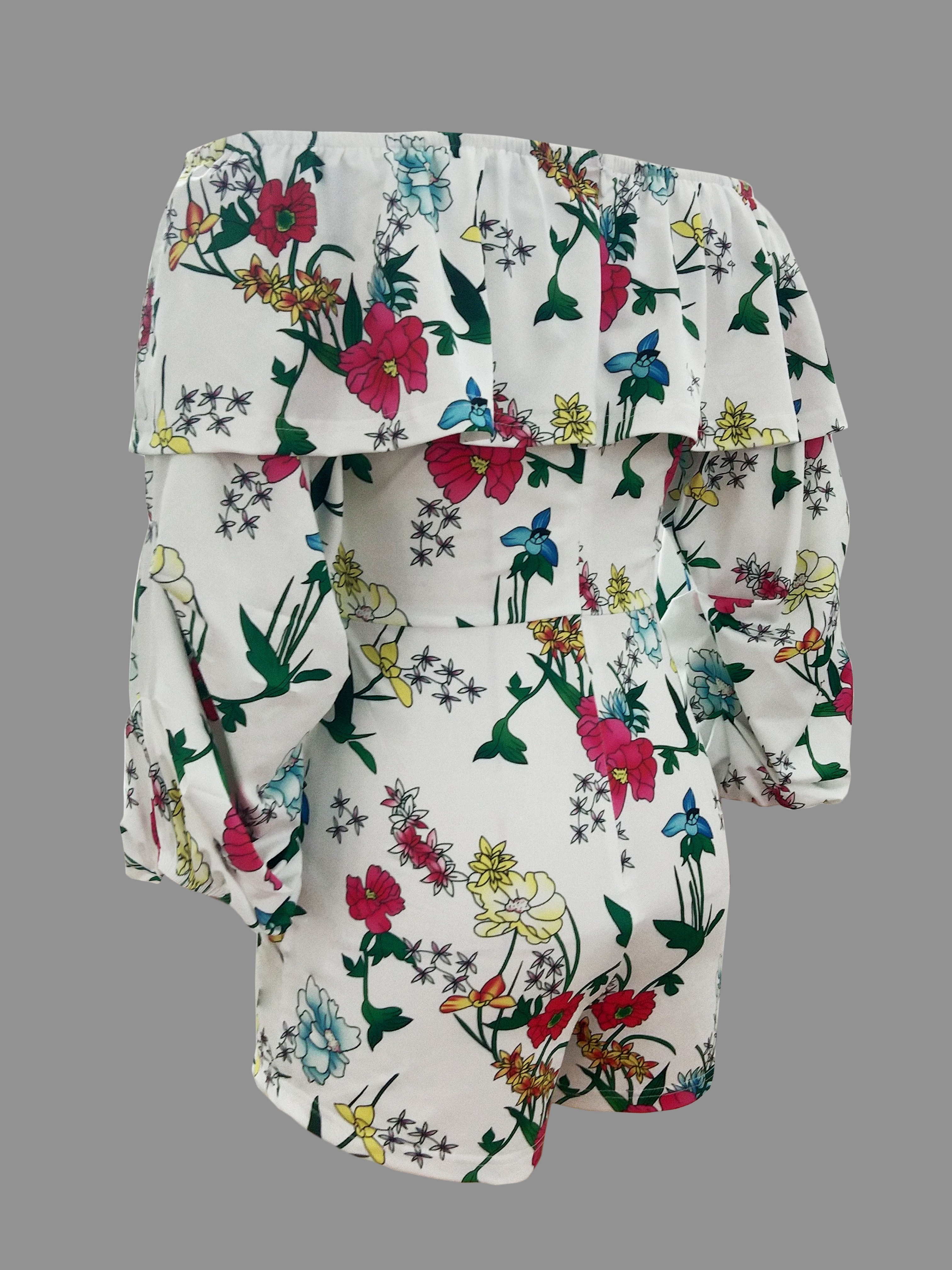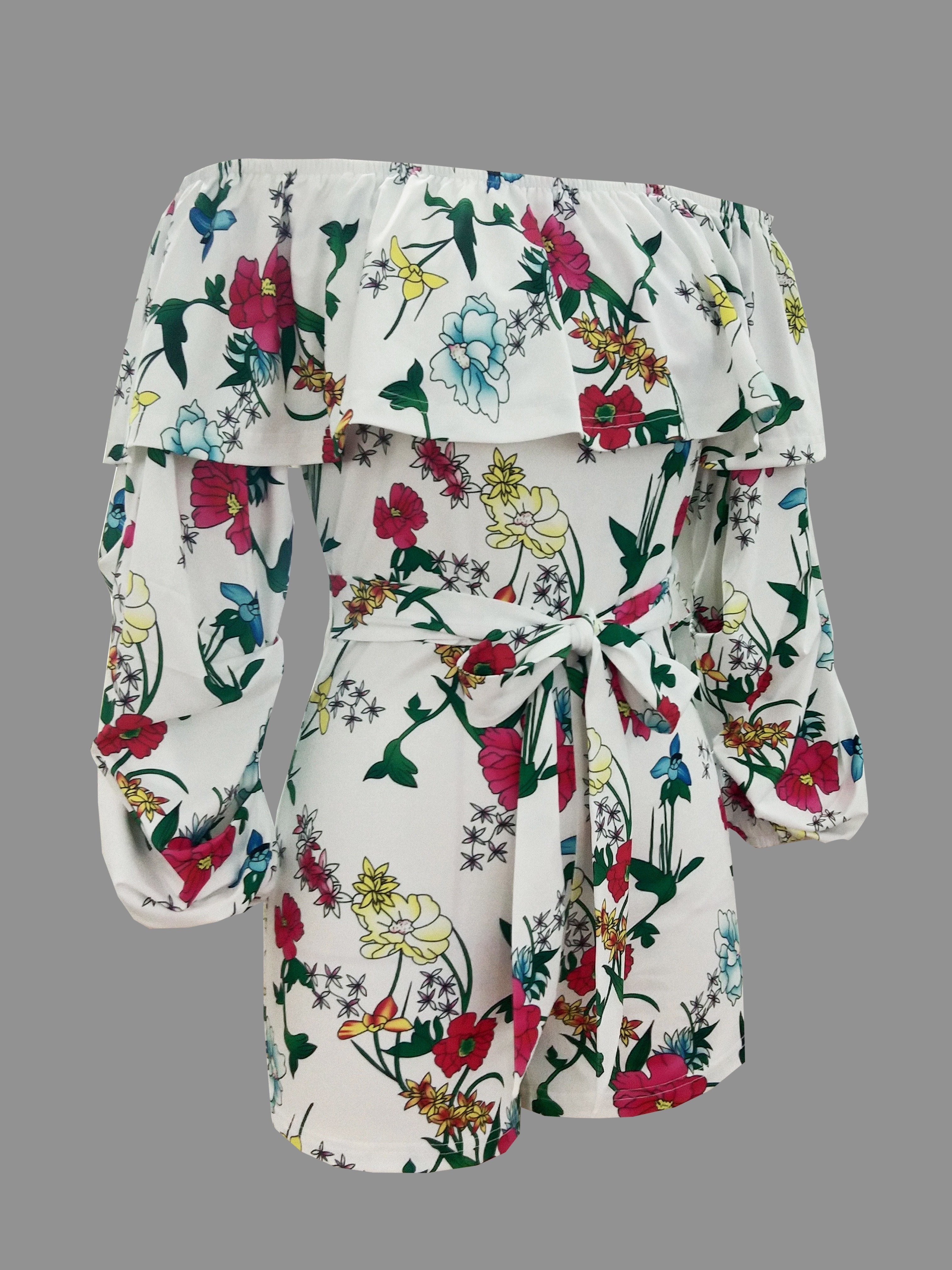 Combinaison-Short Imprimée Fleurie, Dos Nu Élégant à Ceinture