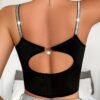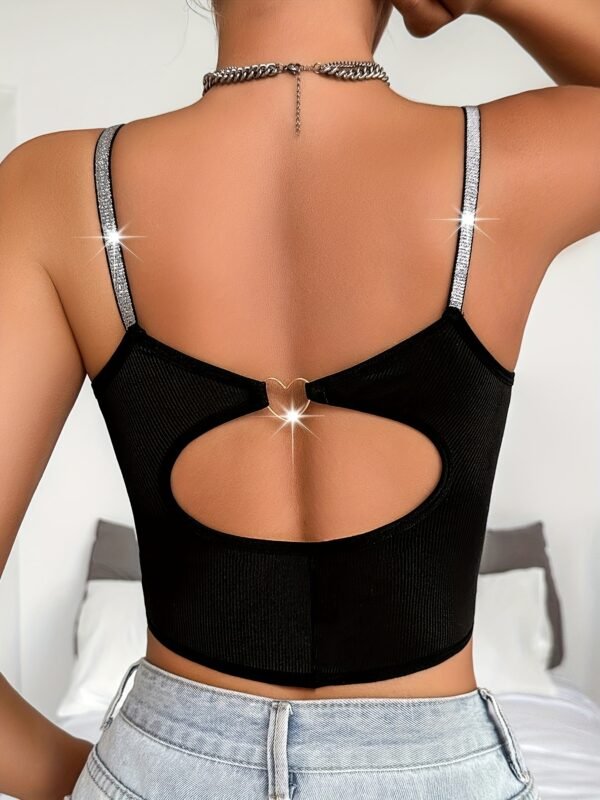 [Débardeur femme] Débardeur mi-long à bretelles pailletées argentées, décolleté dos nu avec cœur découpé, lingerie confortable extensible et polyvalente pour femme