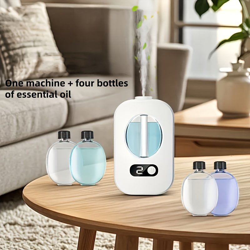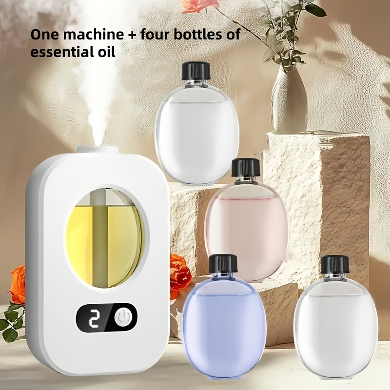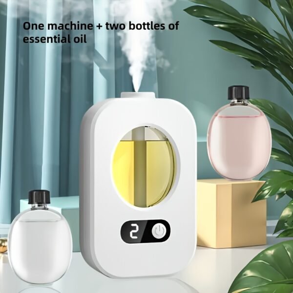 Diffuseur d’Arômes + 2 bouteille d’arome Automatique avec Technologie Sonique Humidificateur, Inclut Vaporisateur de Parfum/Huile Essentielle, Convient pour la Désodorisation de Chambre et de Salle de Bain, Machine à Parfum à Minuteur Automatique, Parfum