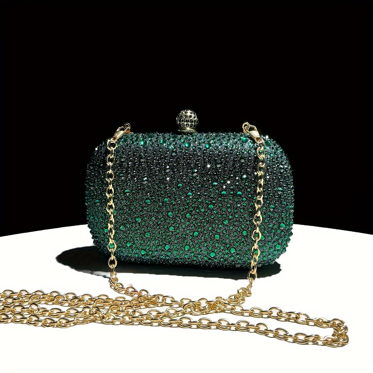 4 avis pour Élégante émeraude en strass, chaîne en métal, sac à main léger et glamour