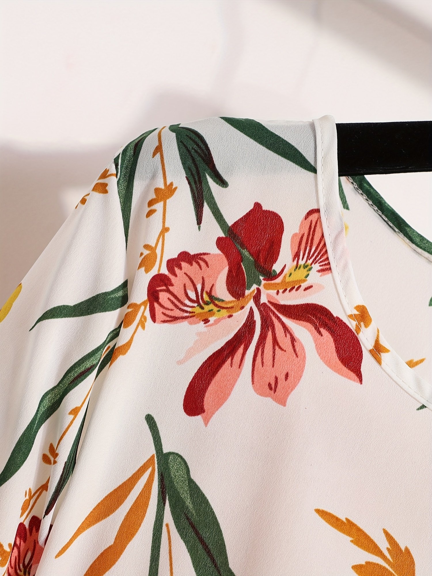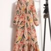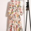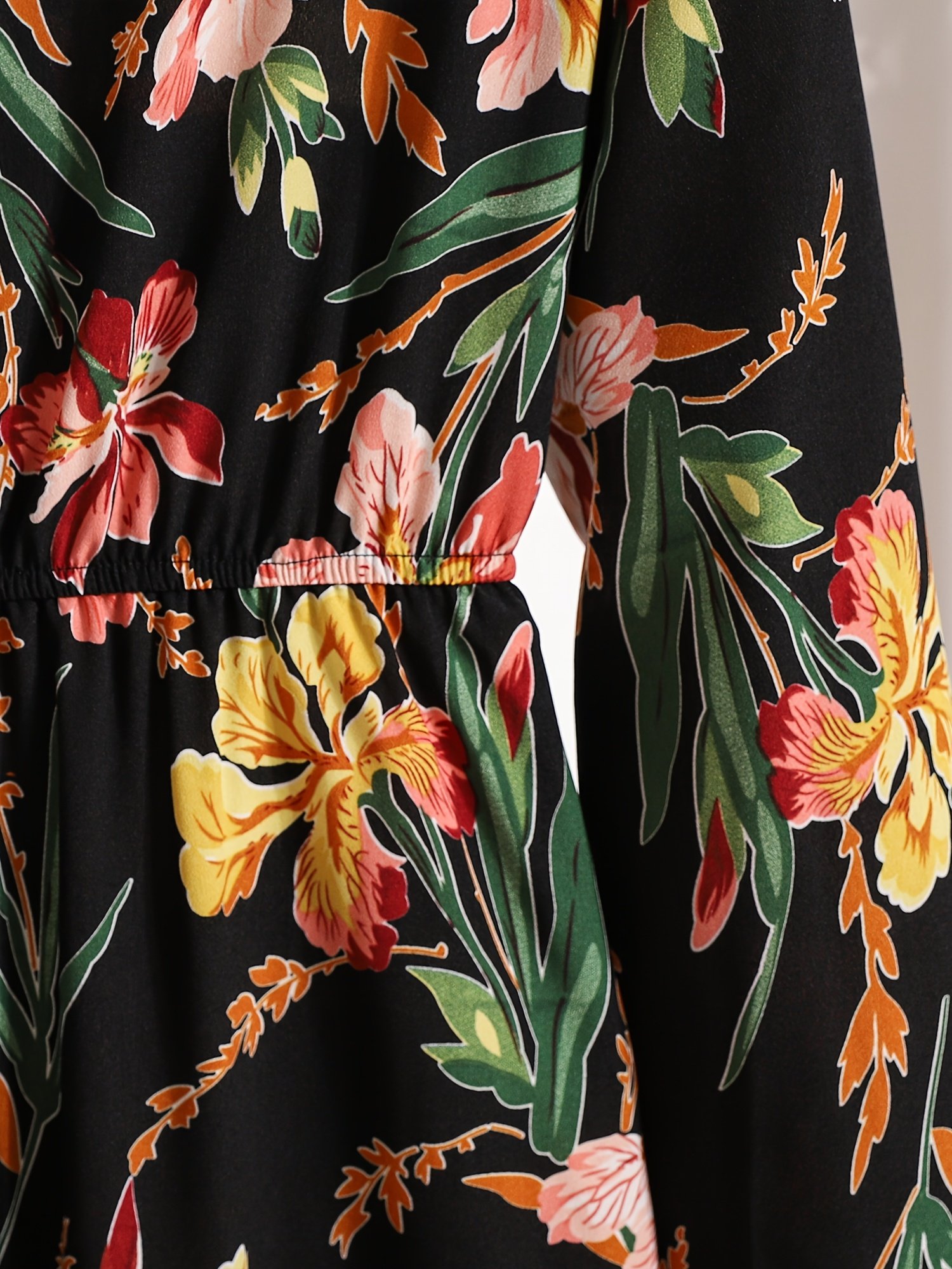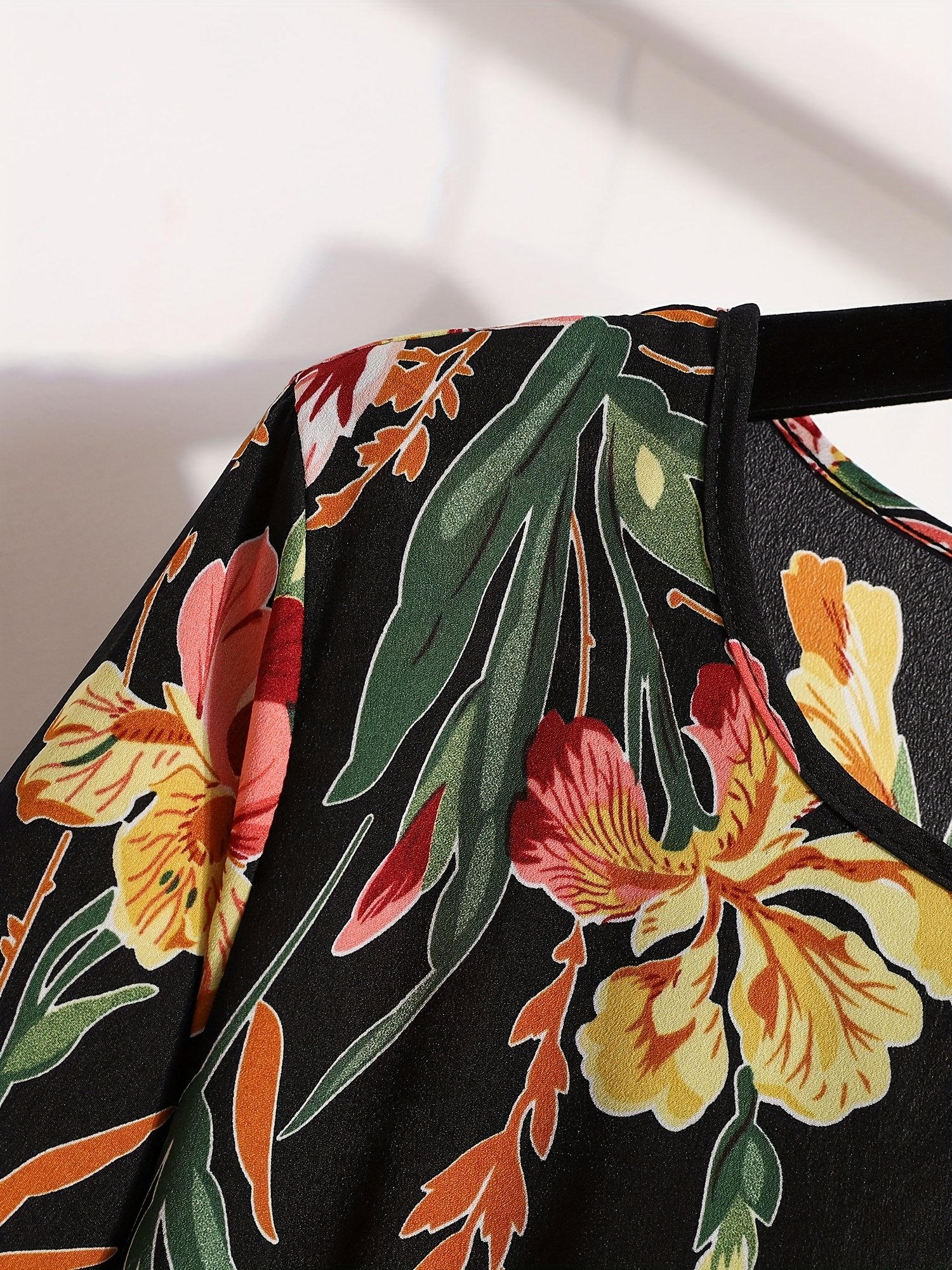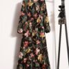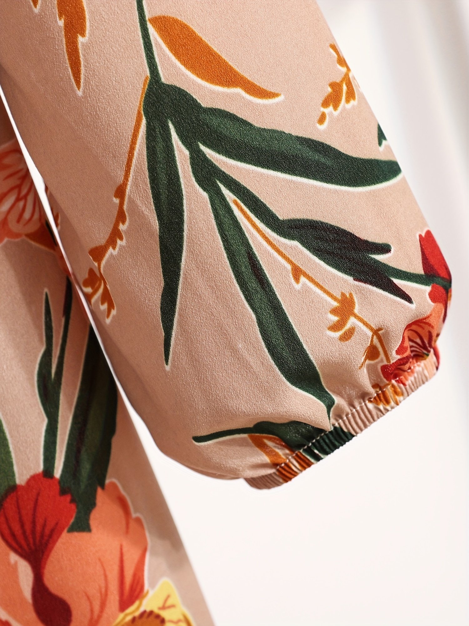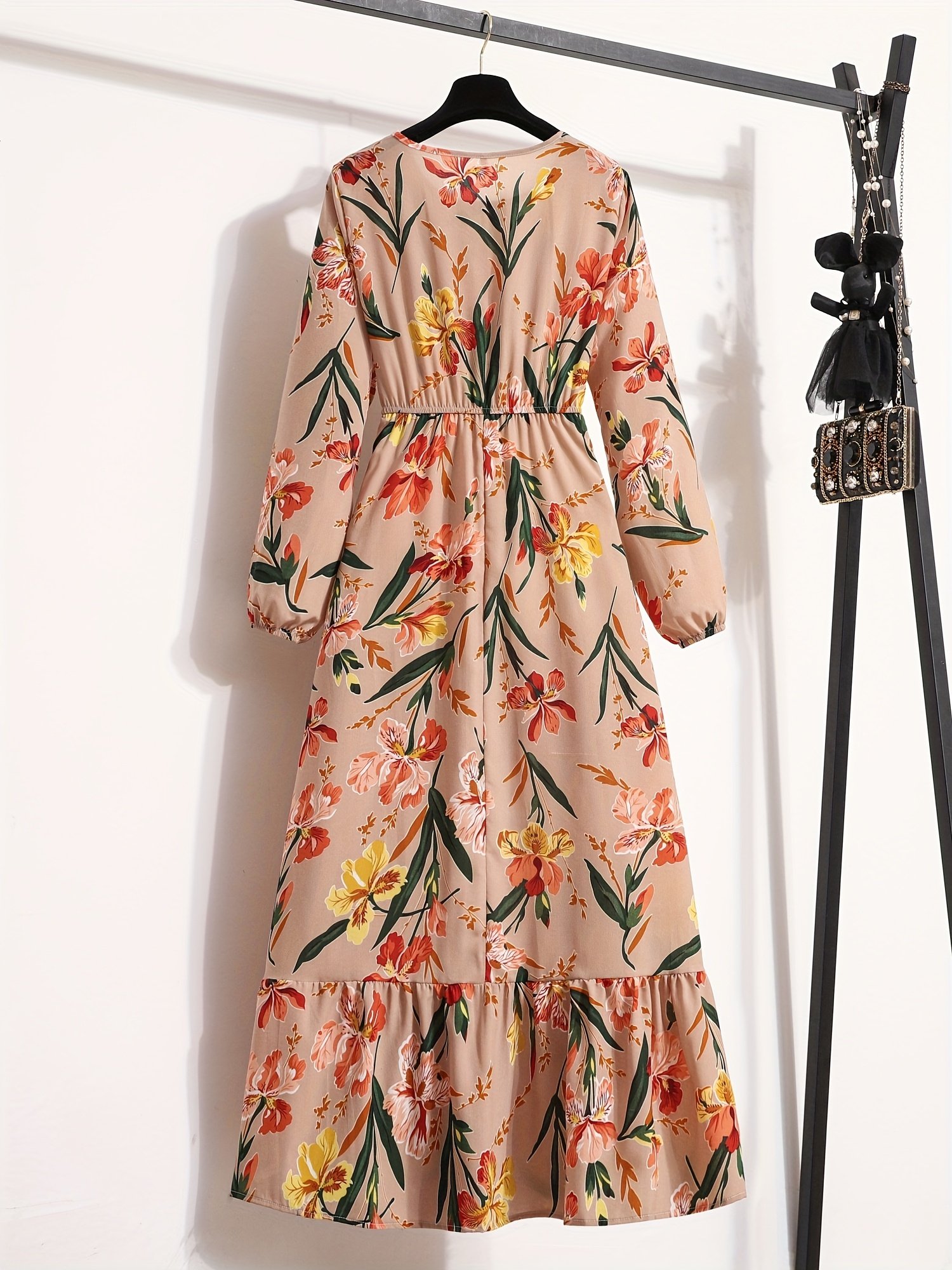 Élégante robe à manches longues et col rond avec imprimé floral de narcisses pour femmes