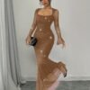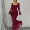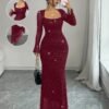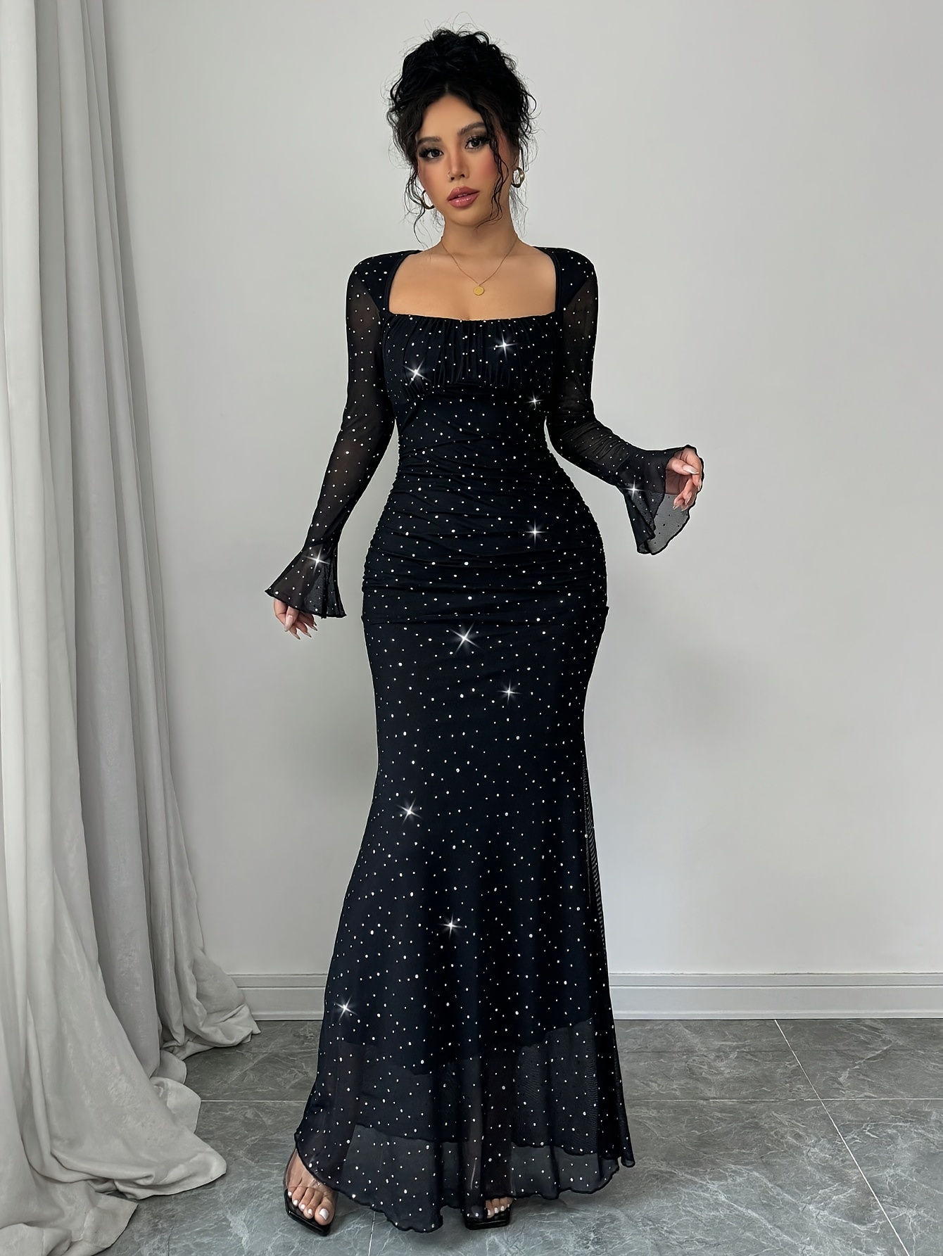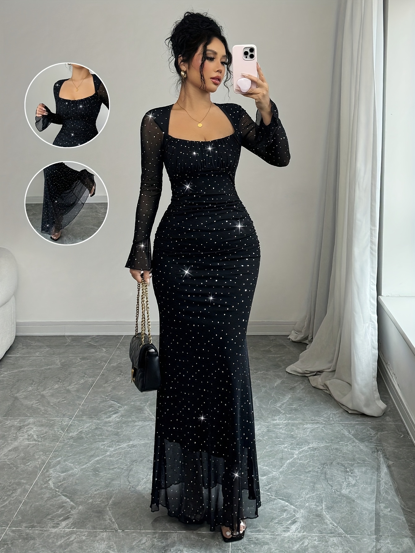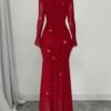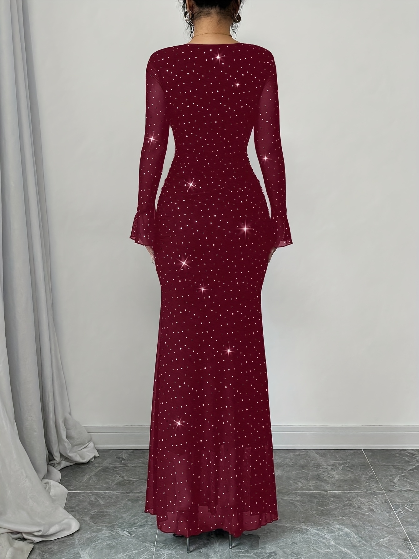 Élégante robe de fête asymétrique à col, plissée sur le devant et les côtés