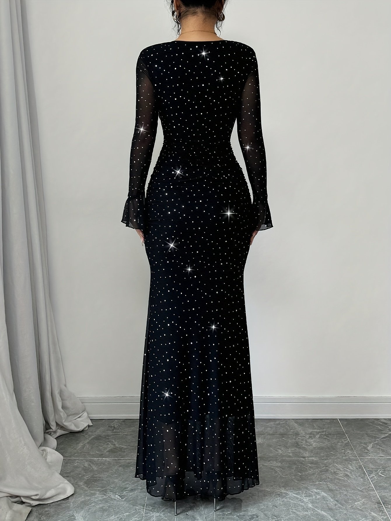 Élégante robe de fête asymétrique à col, plissée sur le devant et les côtés