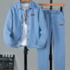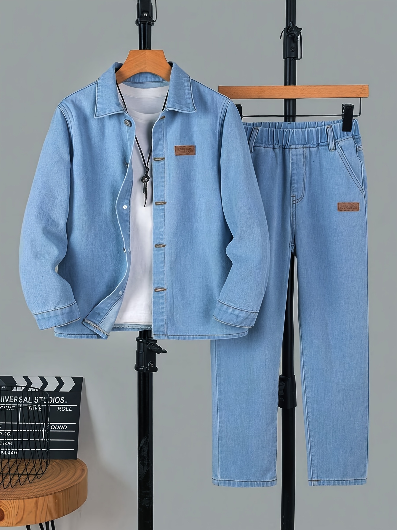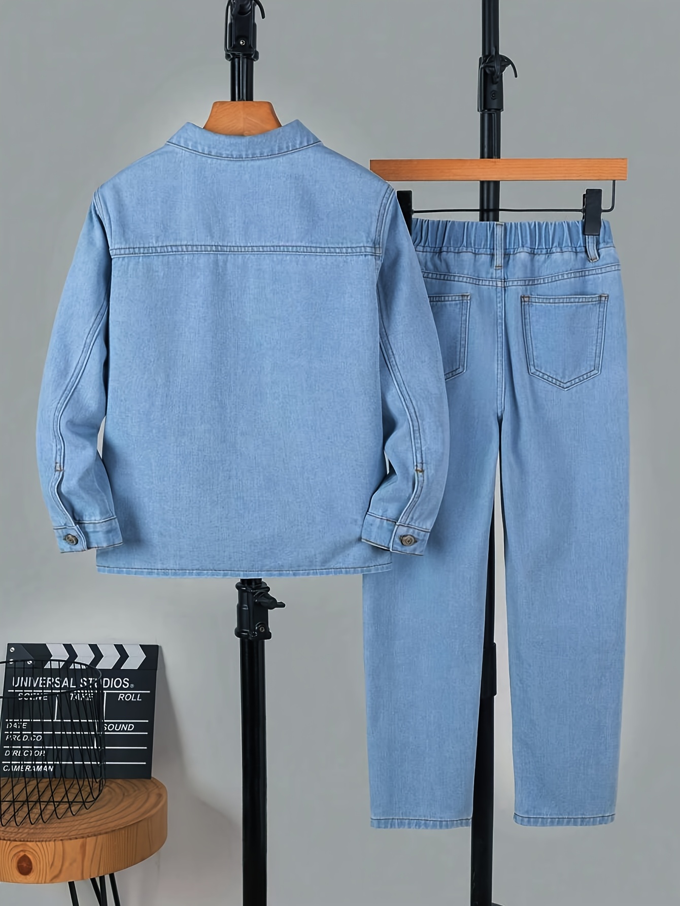 Ensemble décontractée avec jeans bleu clair délavé, veste en jean