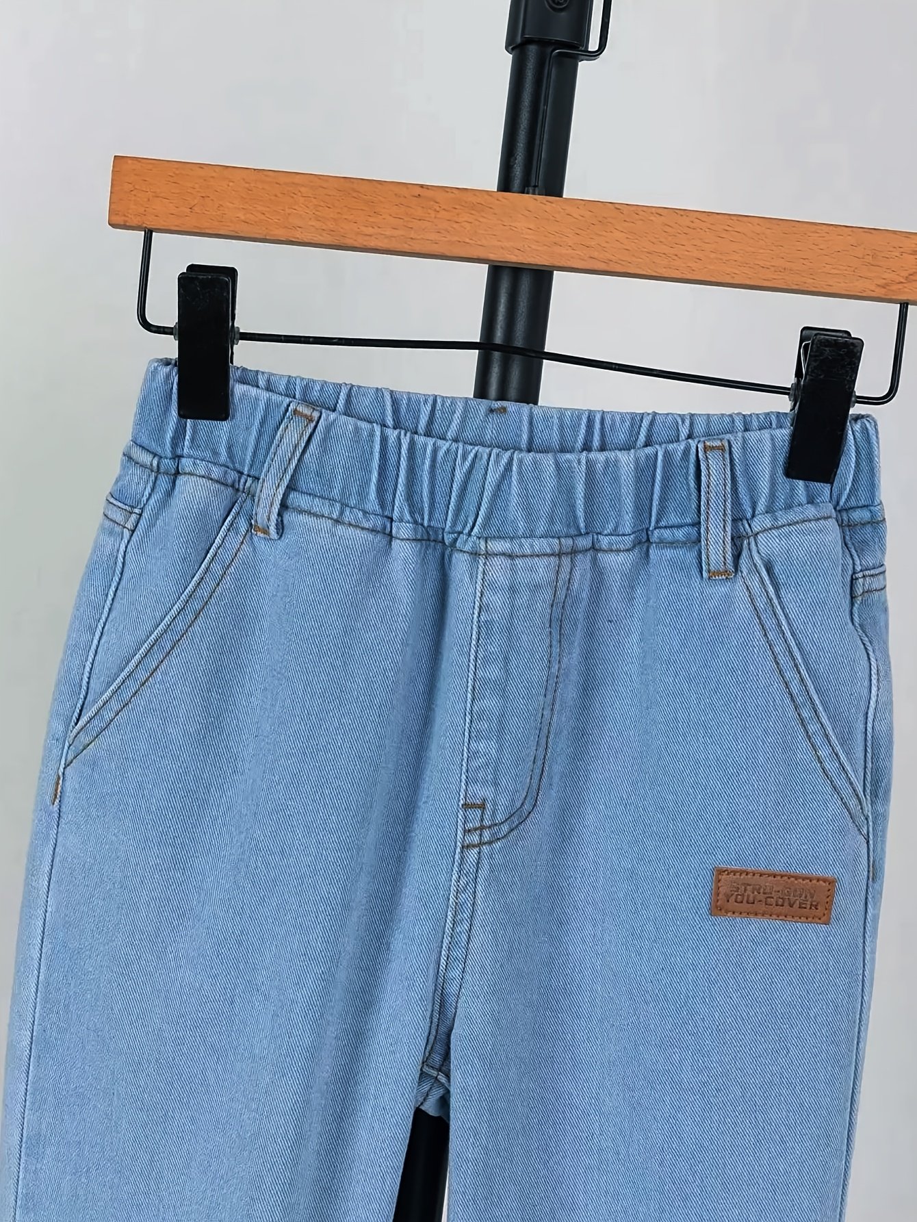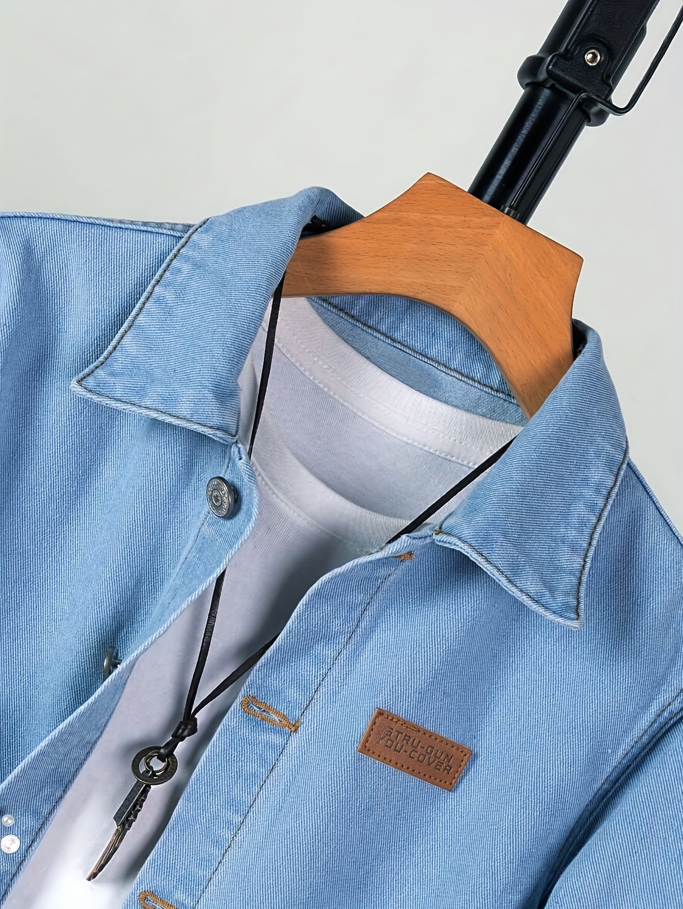 Ensemble décontractée avec jeans bleu clair délavé, veste en jean