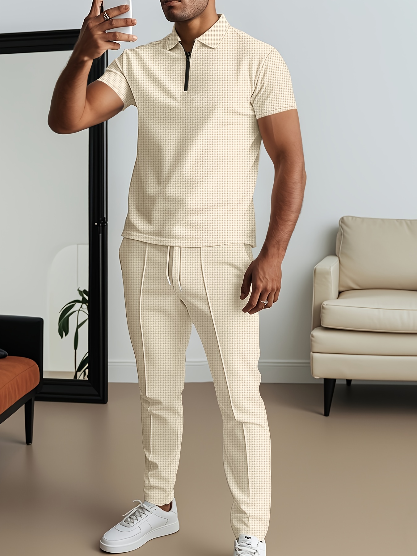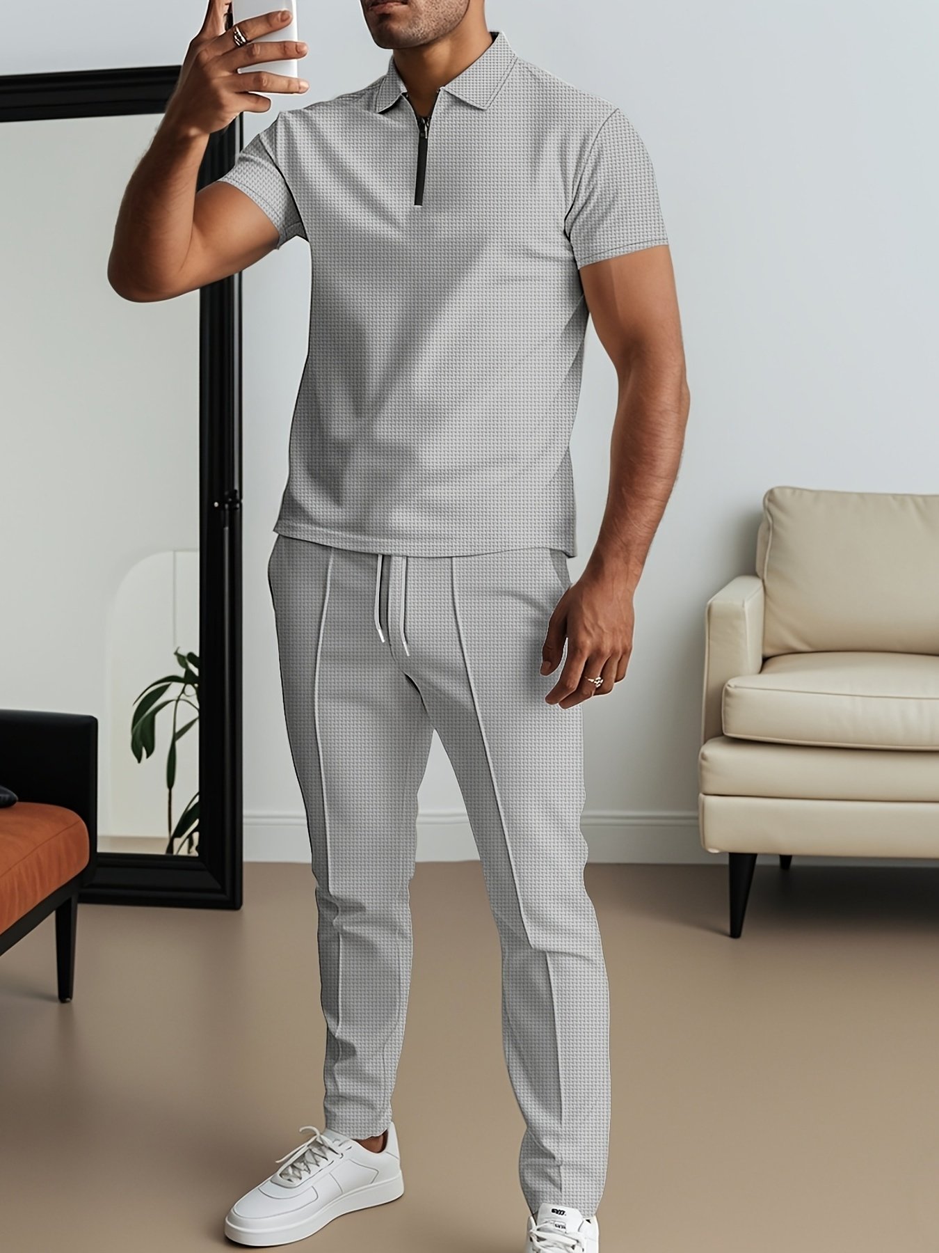 Ensemble 2 pièces T-shirt et pantalon à texture gaufrée pour homme