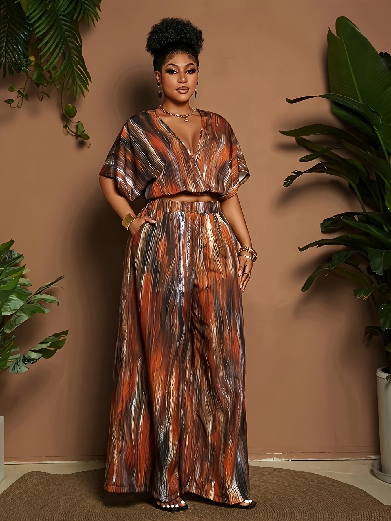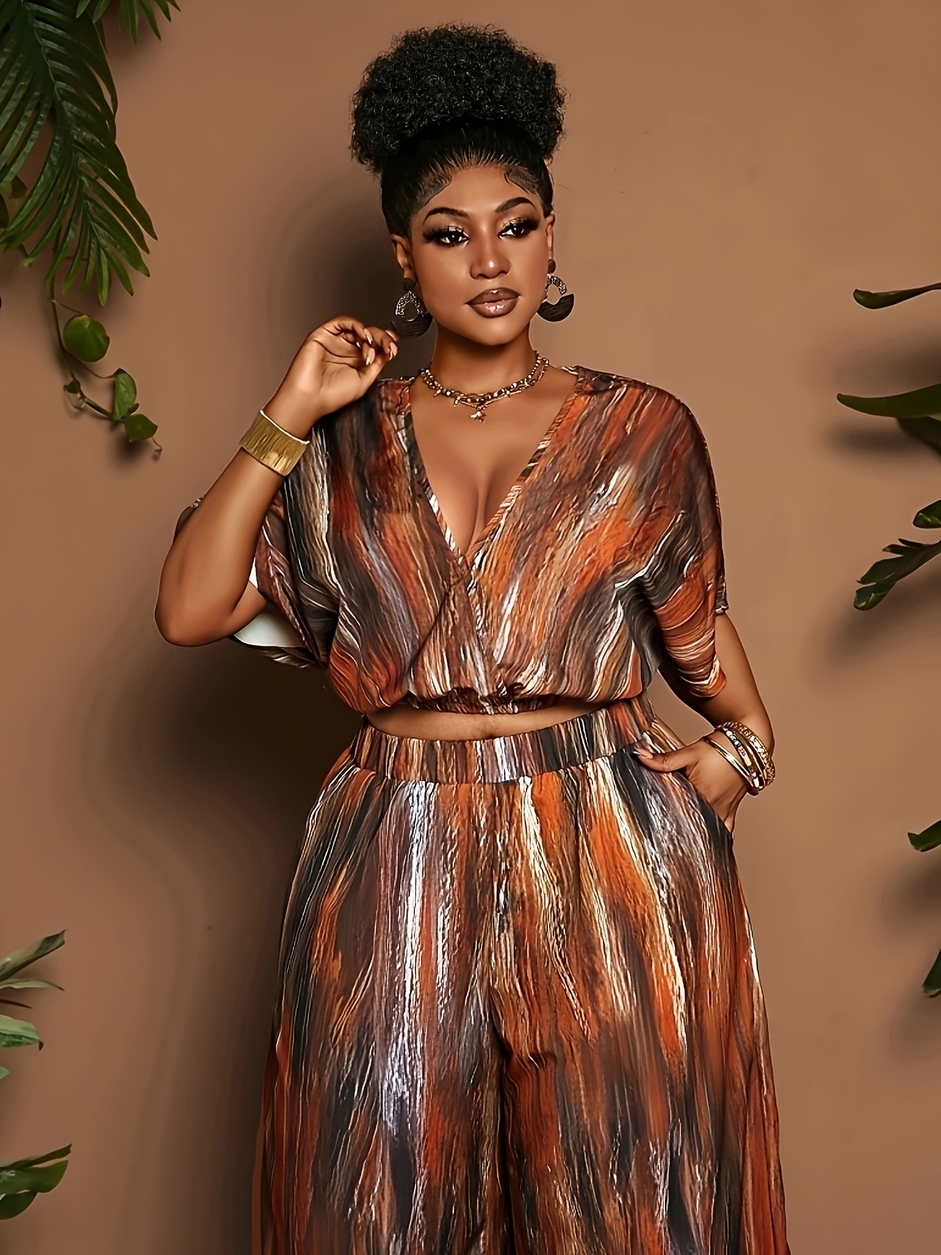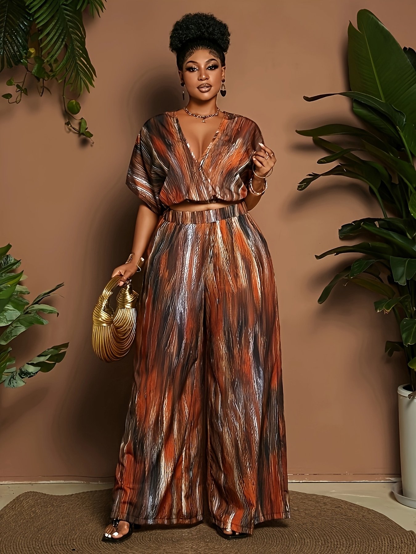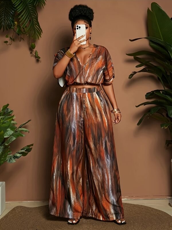 Ensemble 2 pièces taille plus pour femmes, haut à manches courtes et pantalon