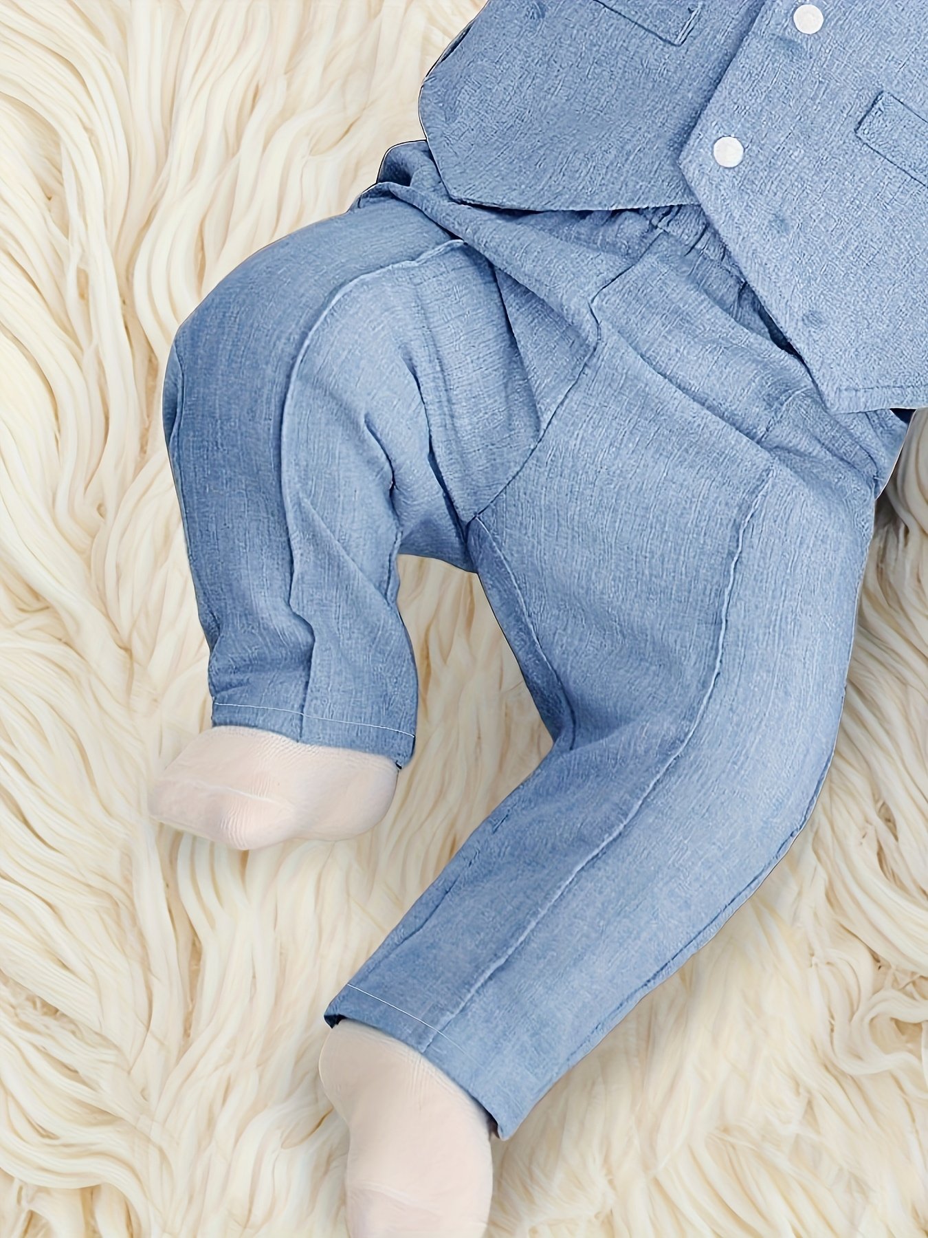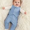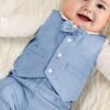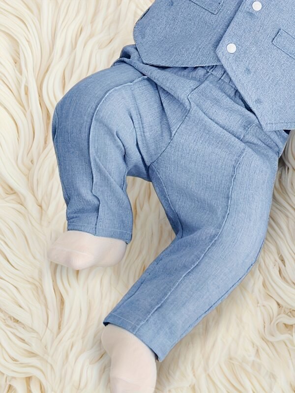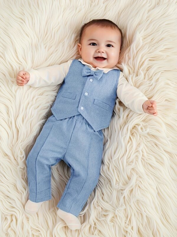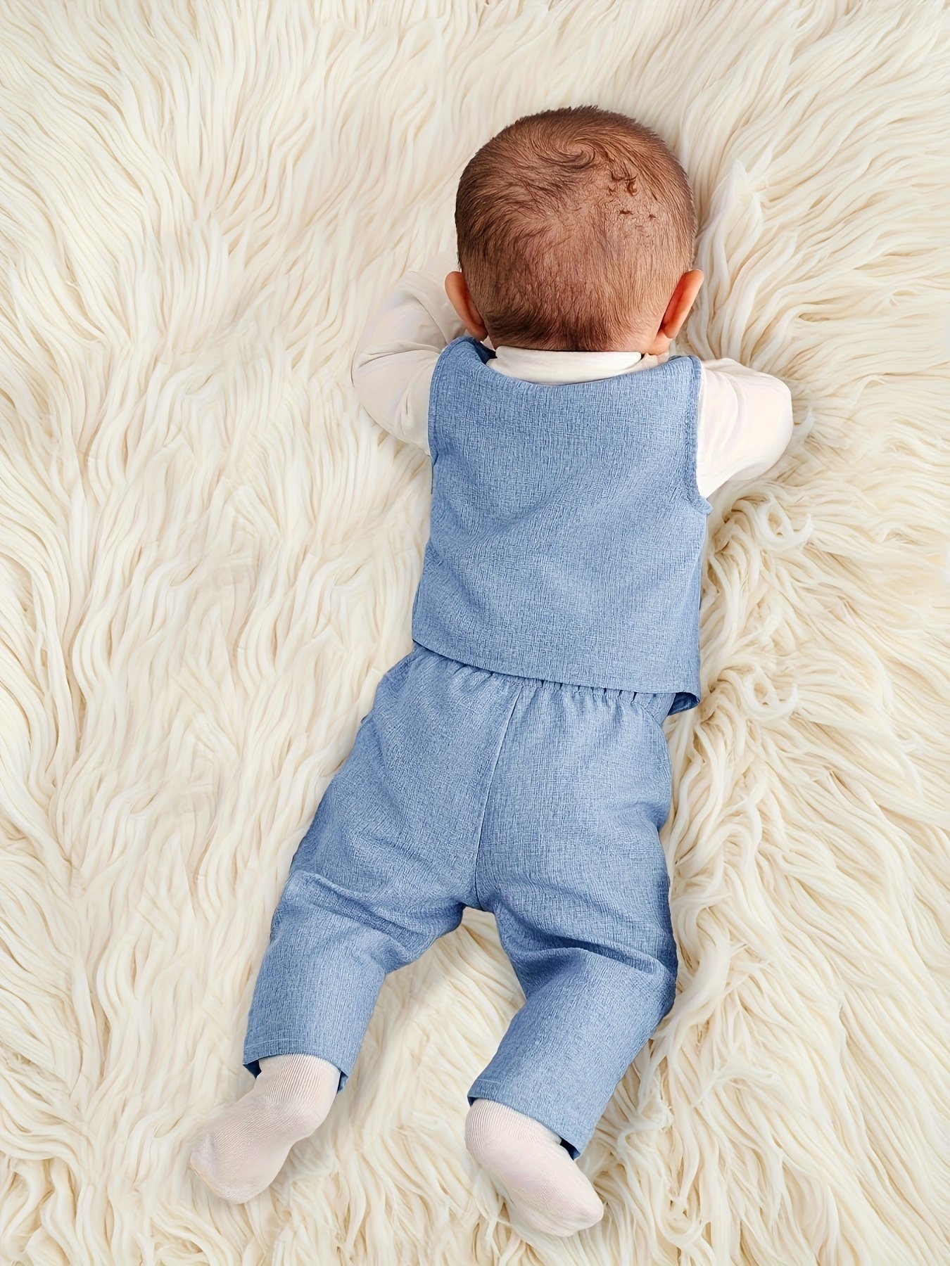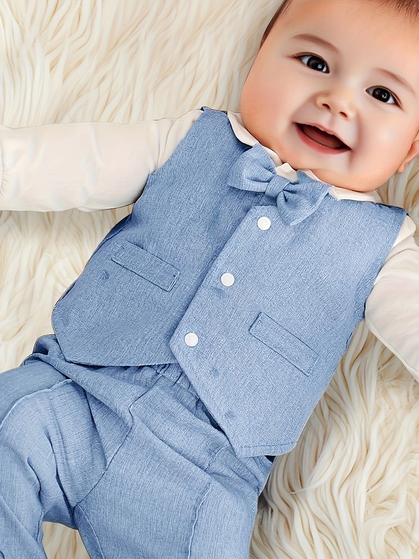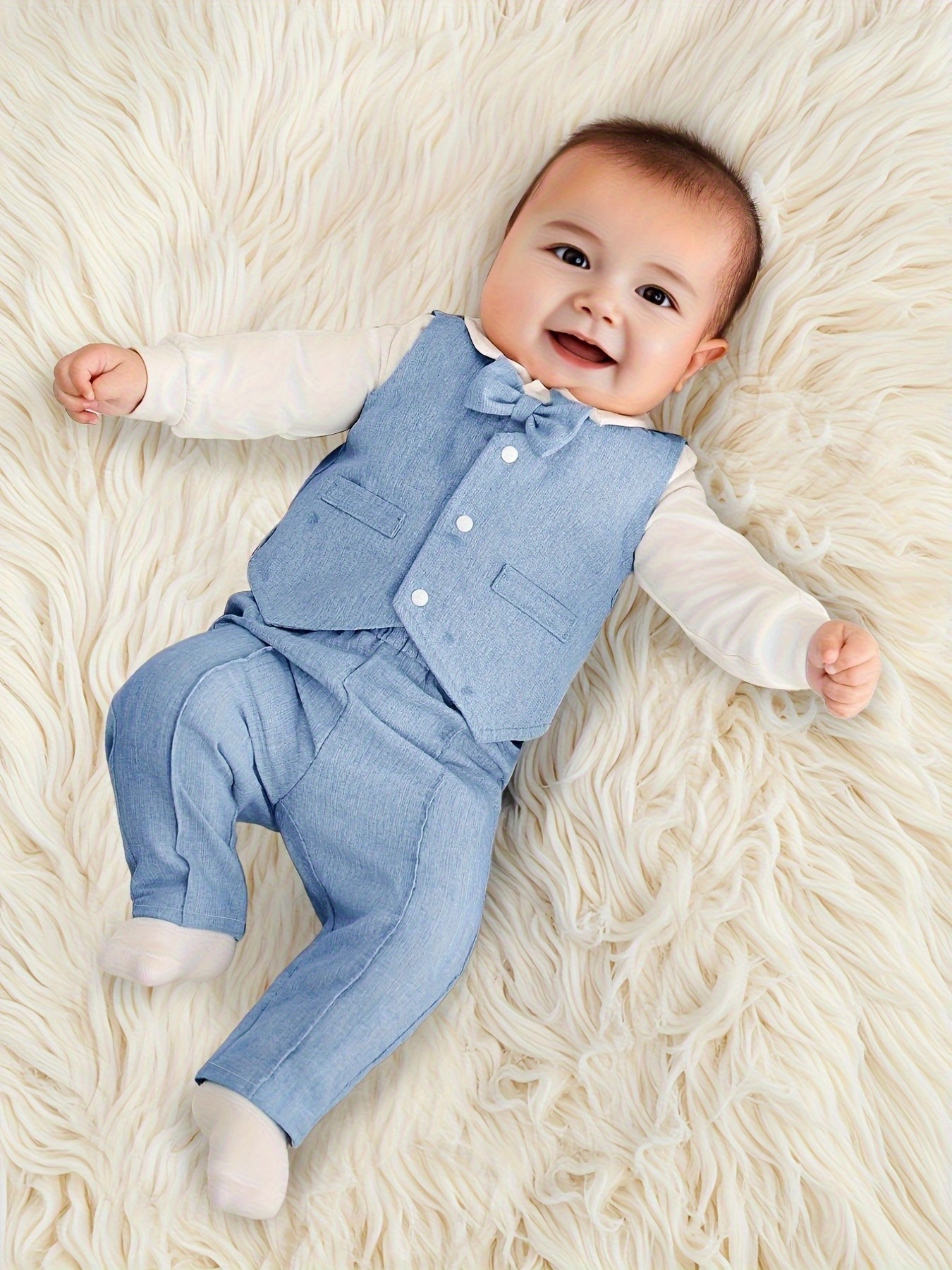 Ensemble 3 pièces Bébé Garçon Décontracté : Gilet + Barboteuse Manches Longues + Pantalon Taille Élastique