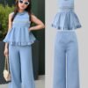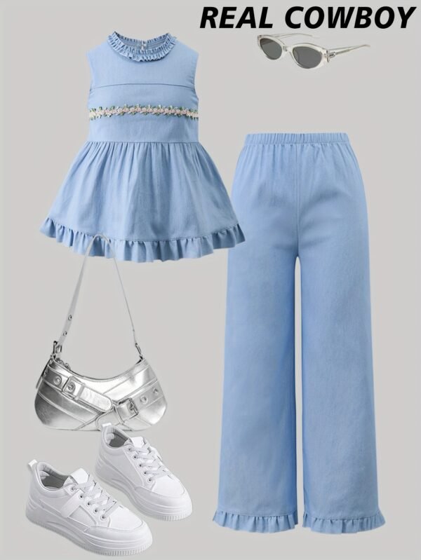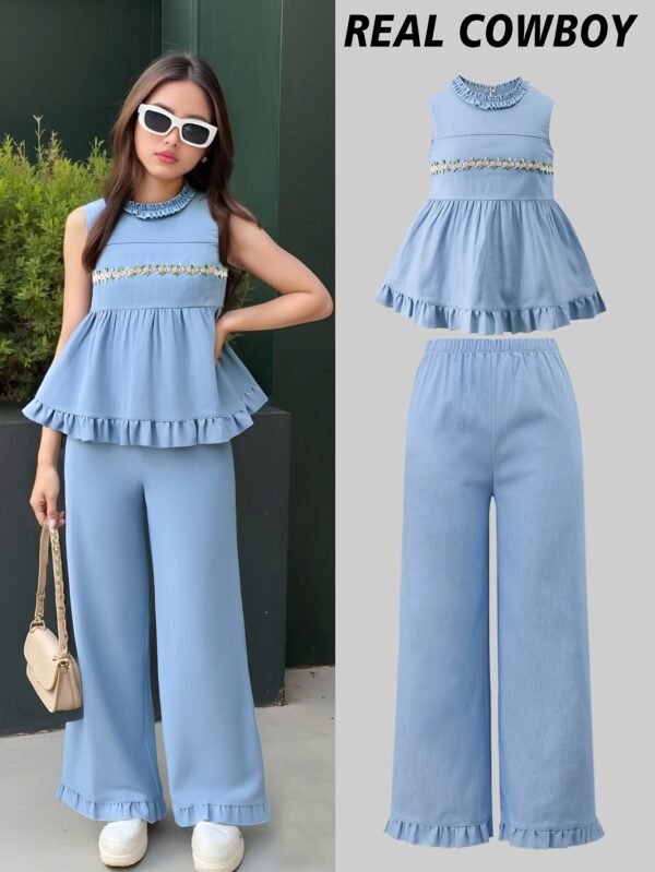 Ensemble à la Mode pour Fille : Haut en Dentelle Sans Manches et Jeans