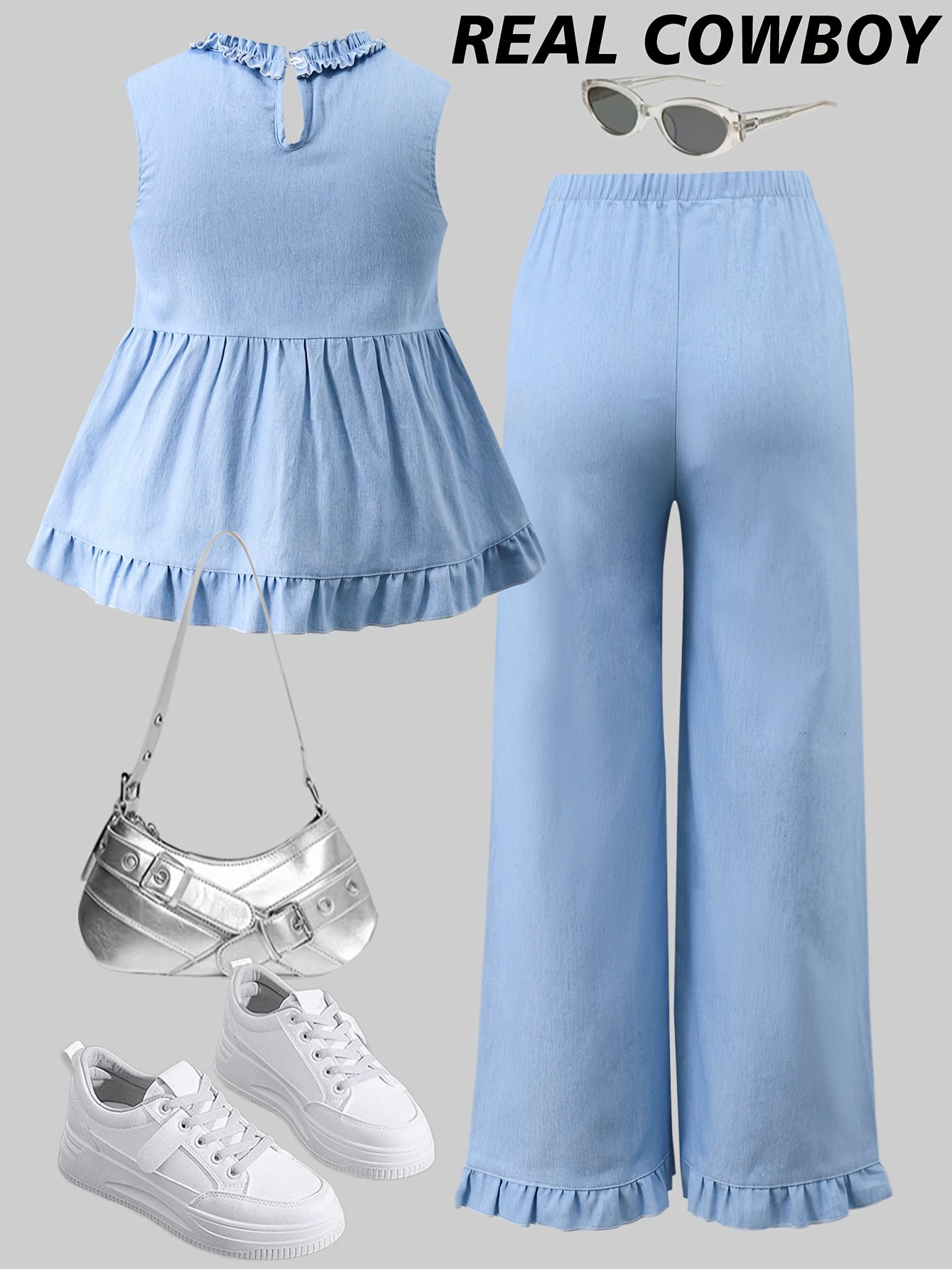 Ensemble à la Mode pour Fille : Haut en Dentelle Sans Manches et Jeans