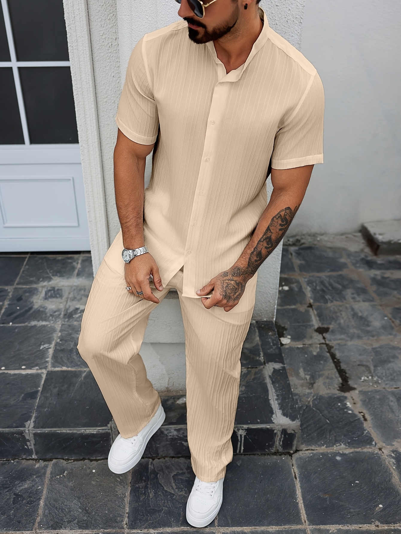 Ensemble chemise à rayures ondulées pour homme, nouvelle collection 2025