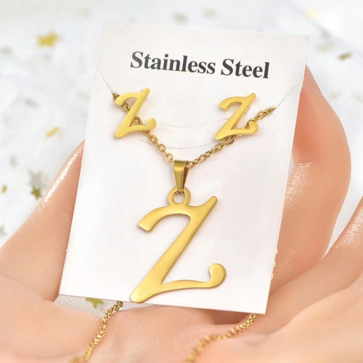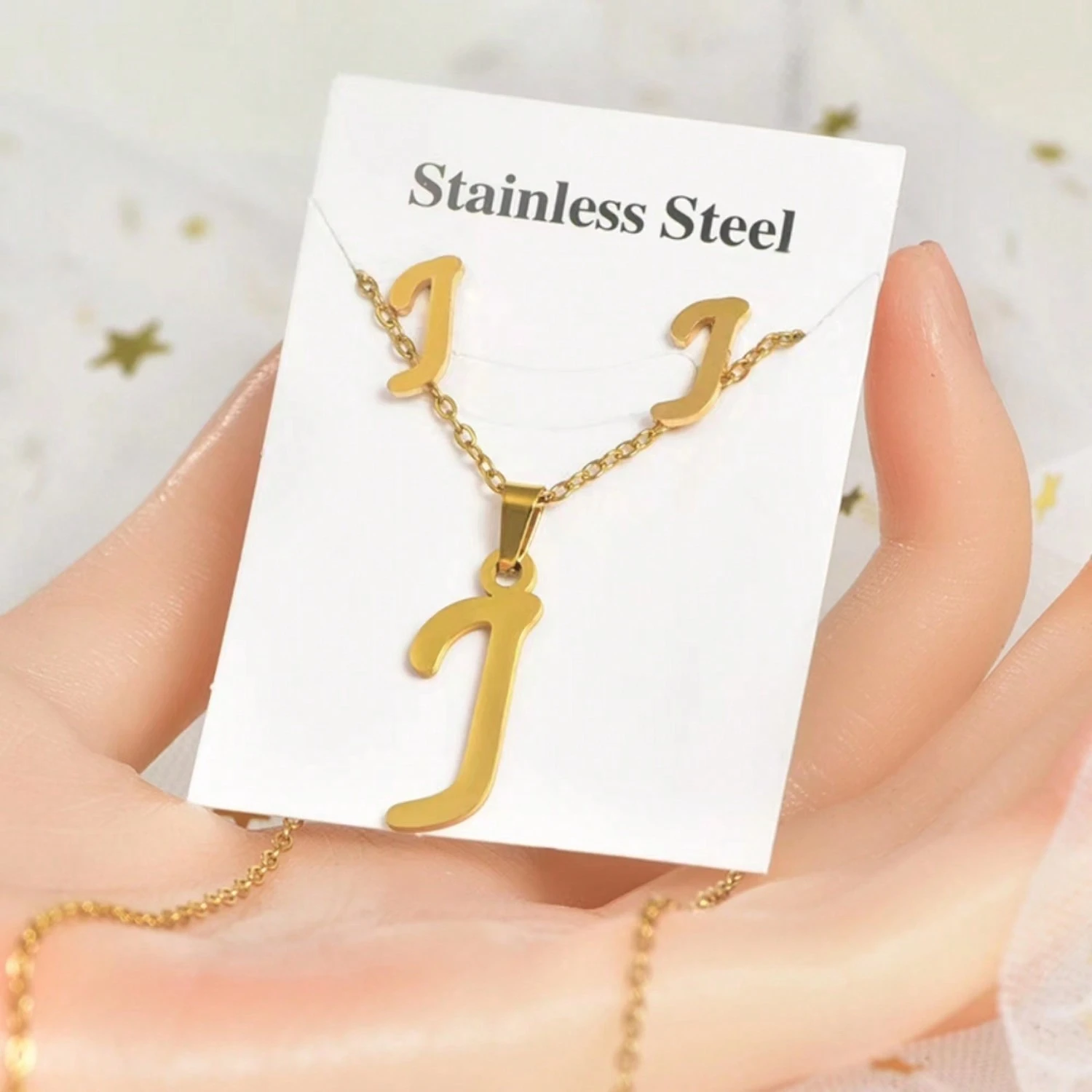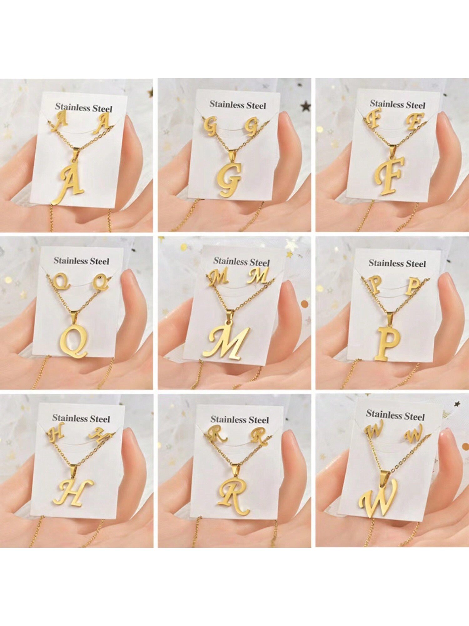 Ensemble Collier Et Boucles D’oreilles Design Lettre 3 Pièces/ensemble Pour Femmes, Accessoire De Mode Personnalisé