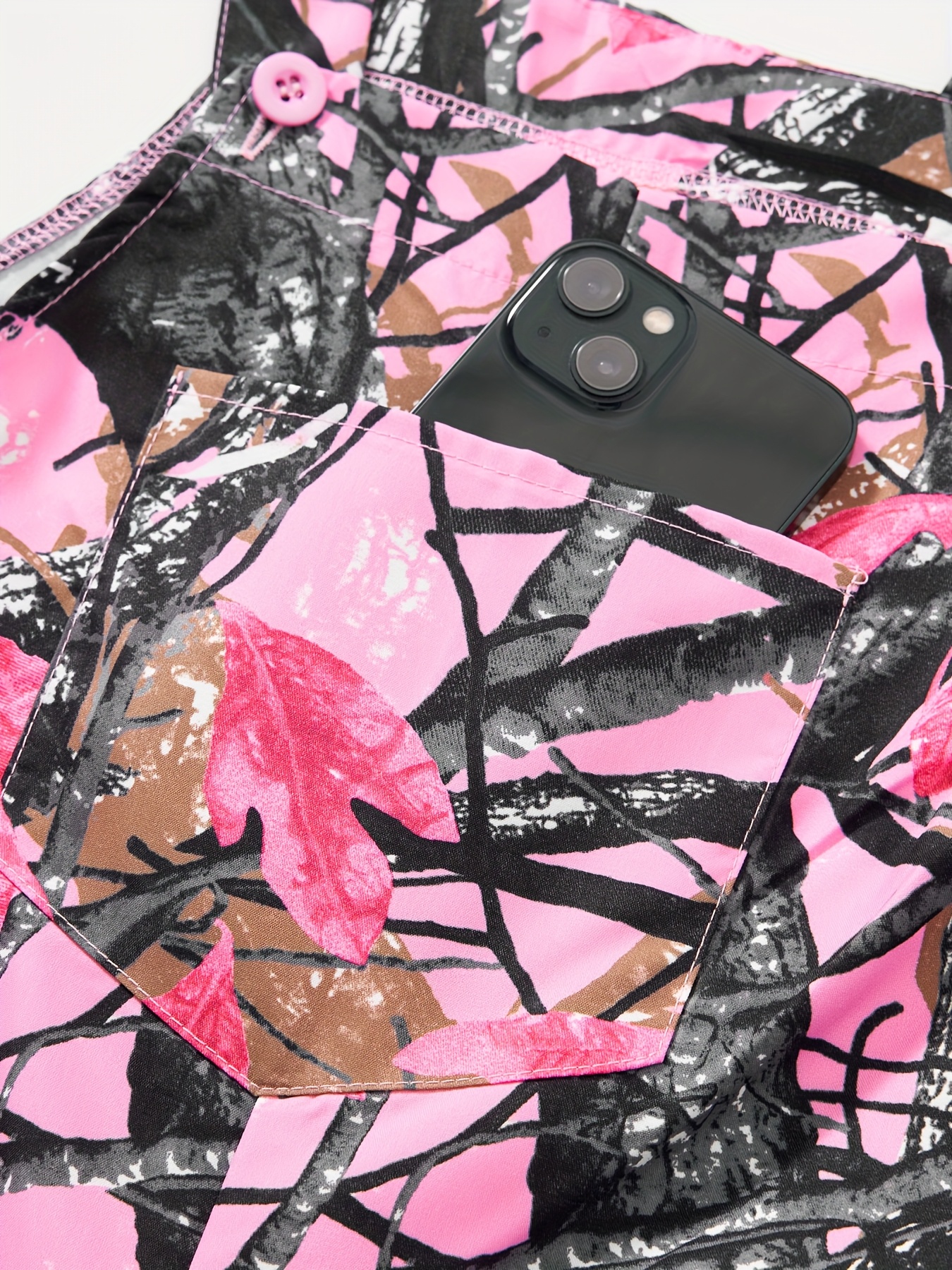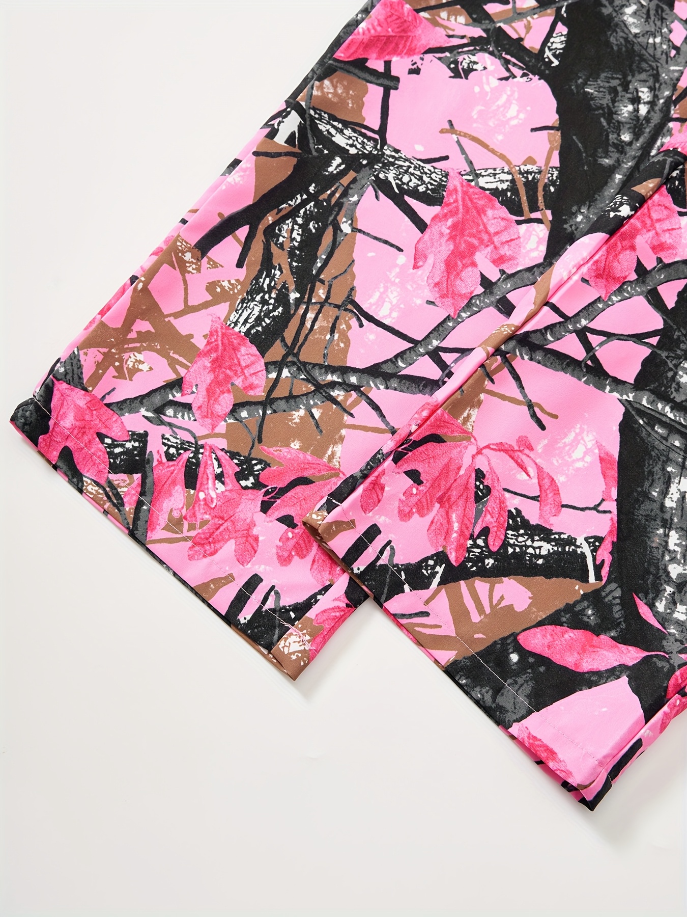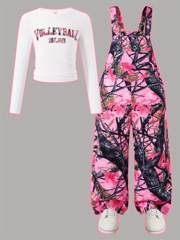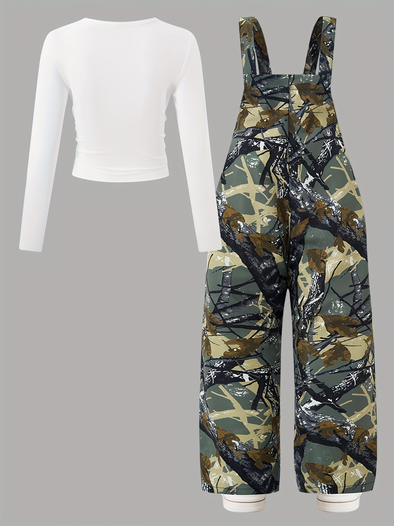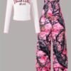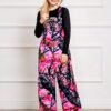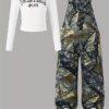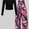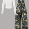 Ensemble Combinaison à Poches Imprimé Plantes et Manches Longues Ajustées