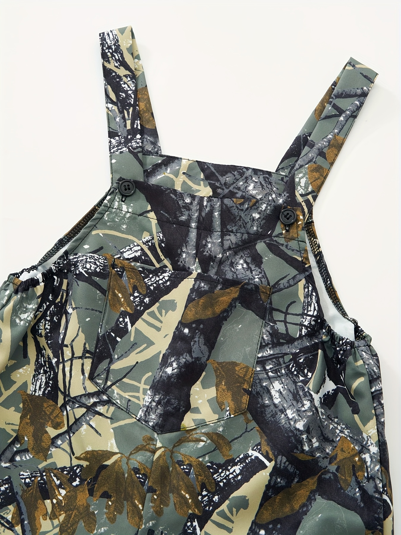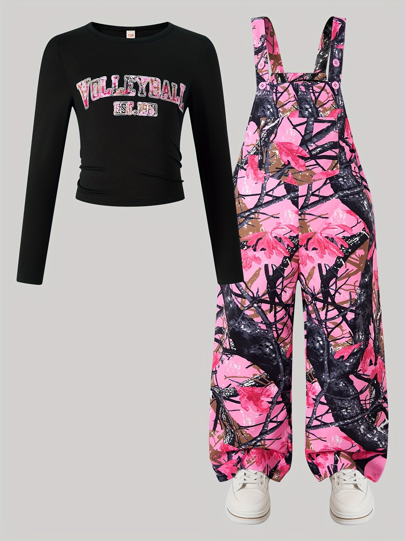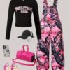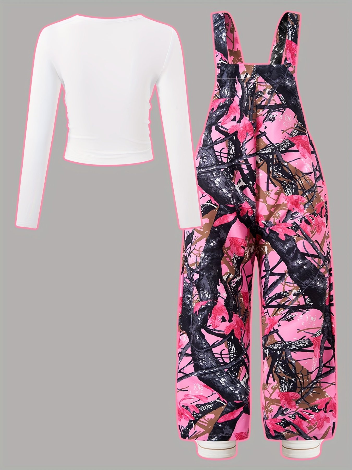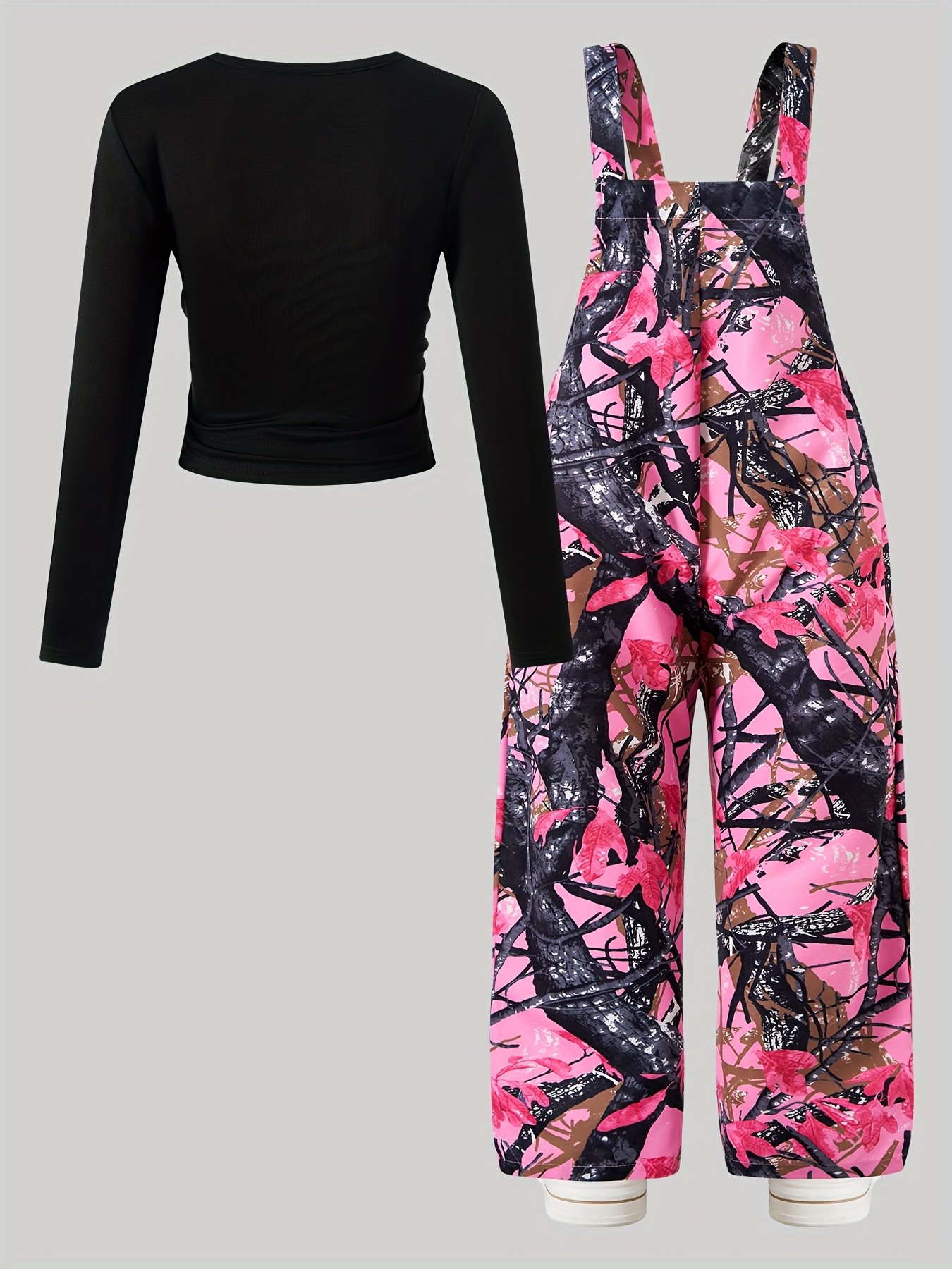 Ensemble Combinaison à Poches Imprimé Plantes et Manches Longues Ajustées