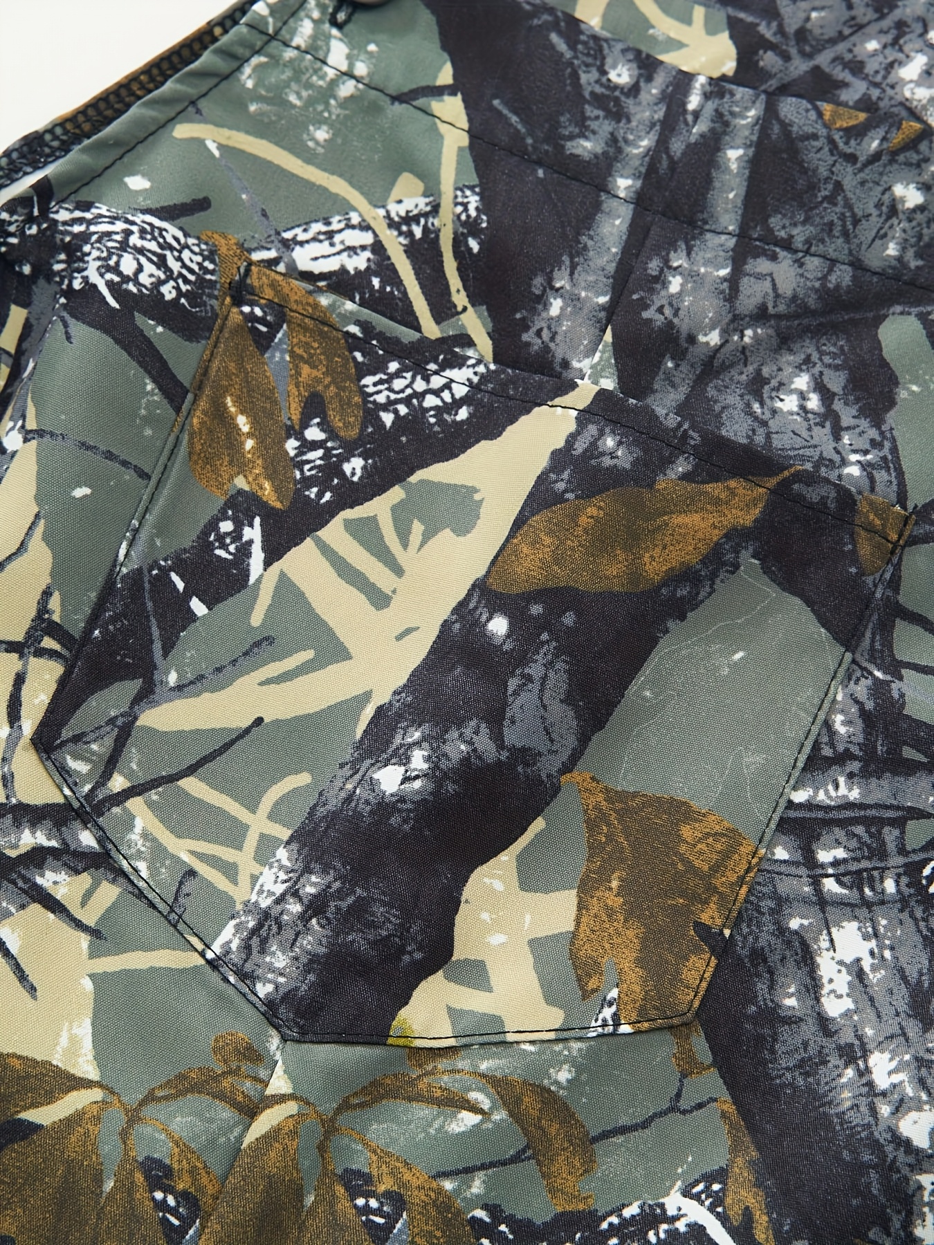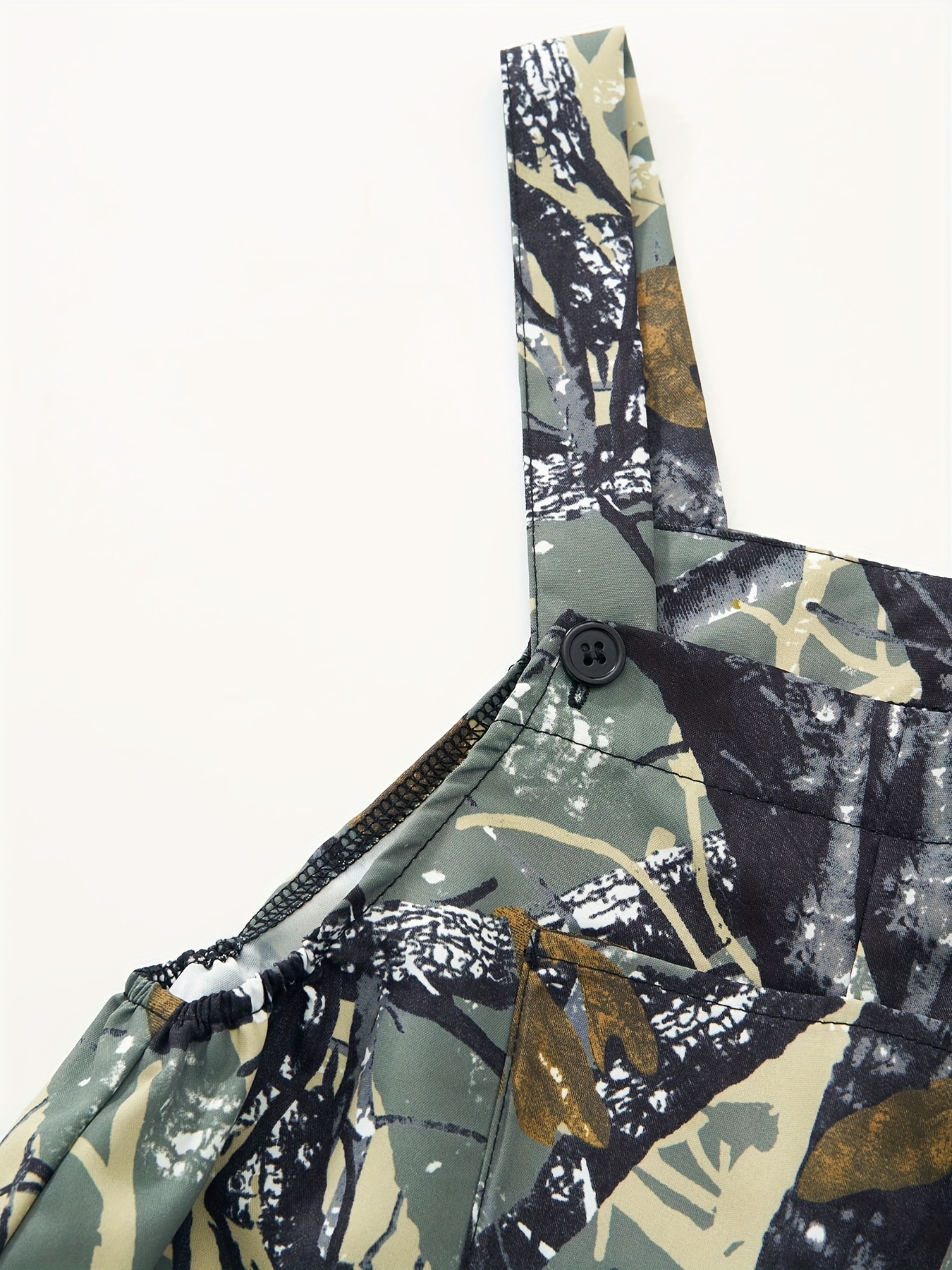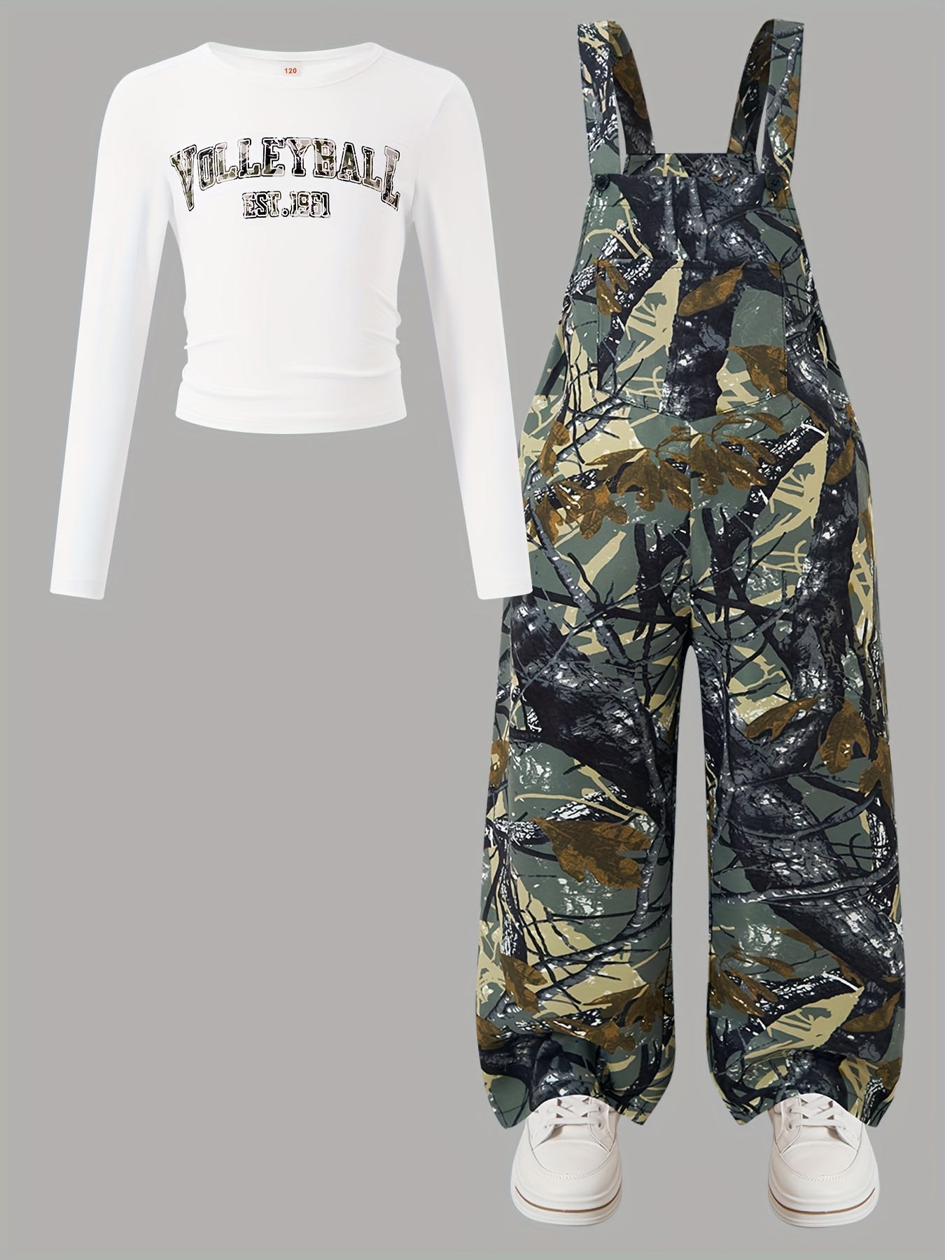 Ensemble Combinaison à Poches Imprimé Plantes et Manches Longues Ajustées
