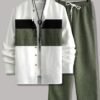 Ensemble Costume Col Mao Trialet Boutonné Élégant en Simil-Lin