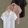 Ensemble de 3 chemises décontractées à manches courtes pour hommes – Col montant uni, tissu léger et respirant pour bureau, affaires, plage et vacances – Chemises d’été lavables en machine pour hommes, chemises habillées pour hommes, chemises à manches longues pour hommes, décontractées, Tenue