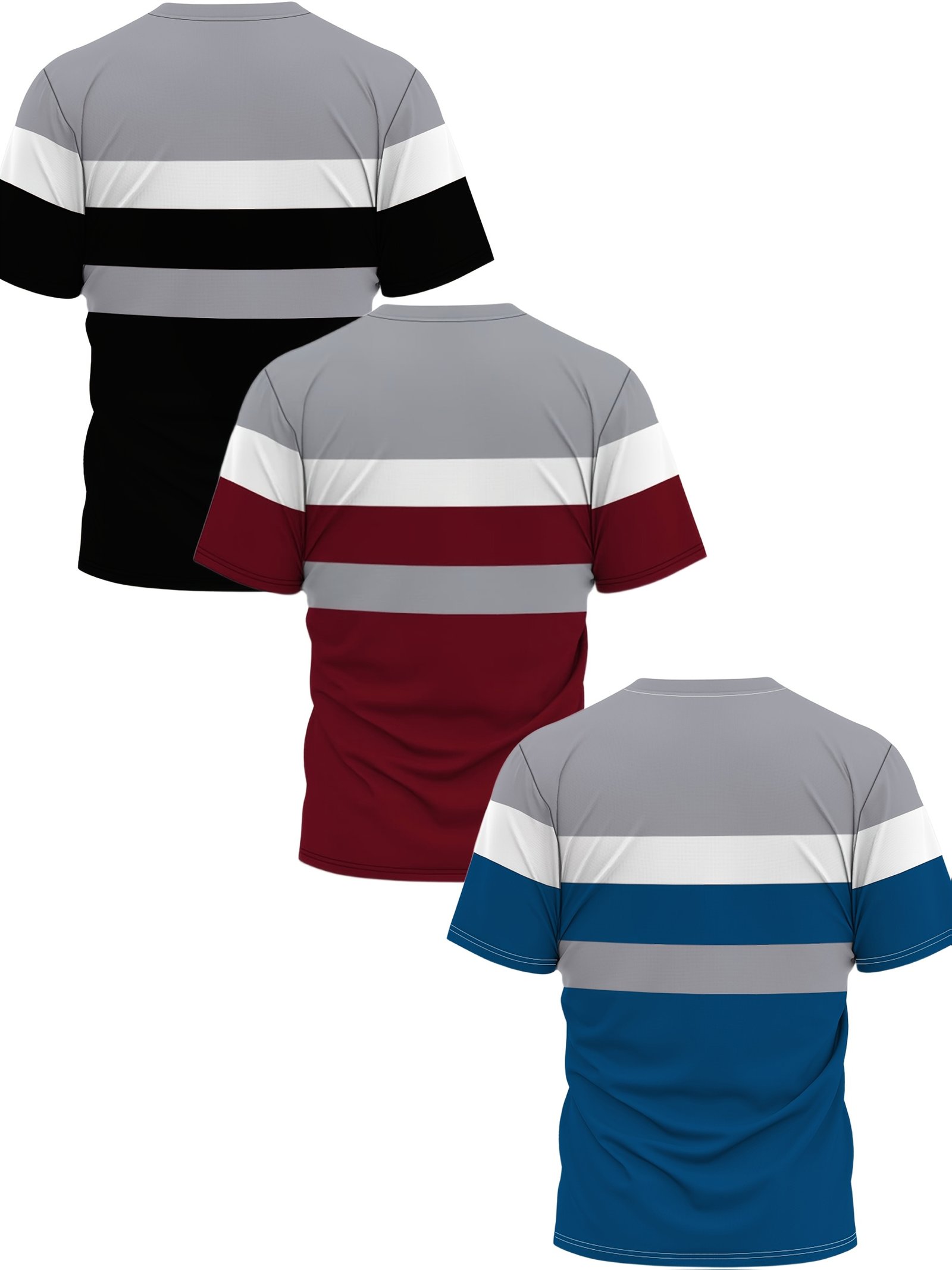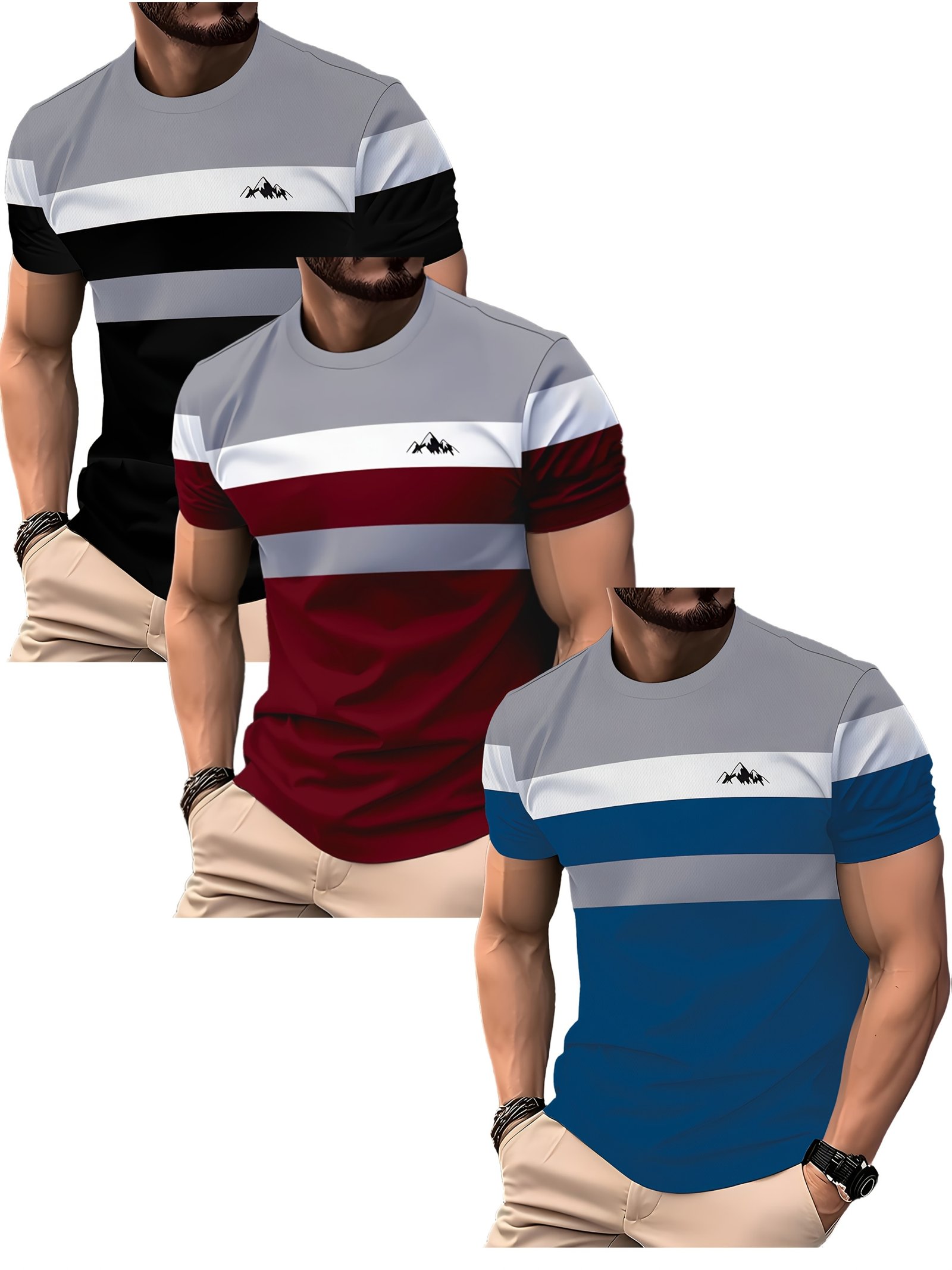 Ensemble de 3 t-shirts imprimés 3D pour hommes avec motif montagne – Manches courtes, col rond, vêtements de sport d’extérieur décontractés pour l’été, tissu extensible, coupe régulière, adulte, vêtements de sport d’extérieur|Style décontracté|Tissu extensible