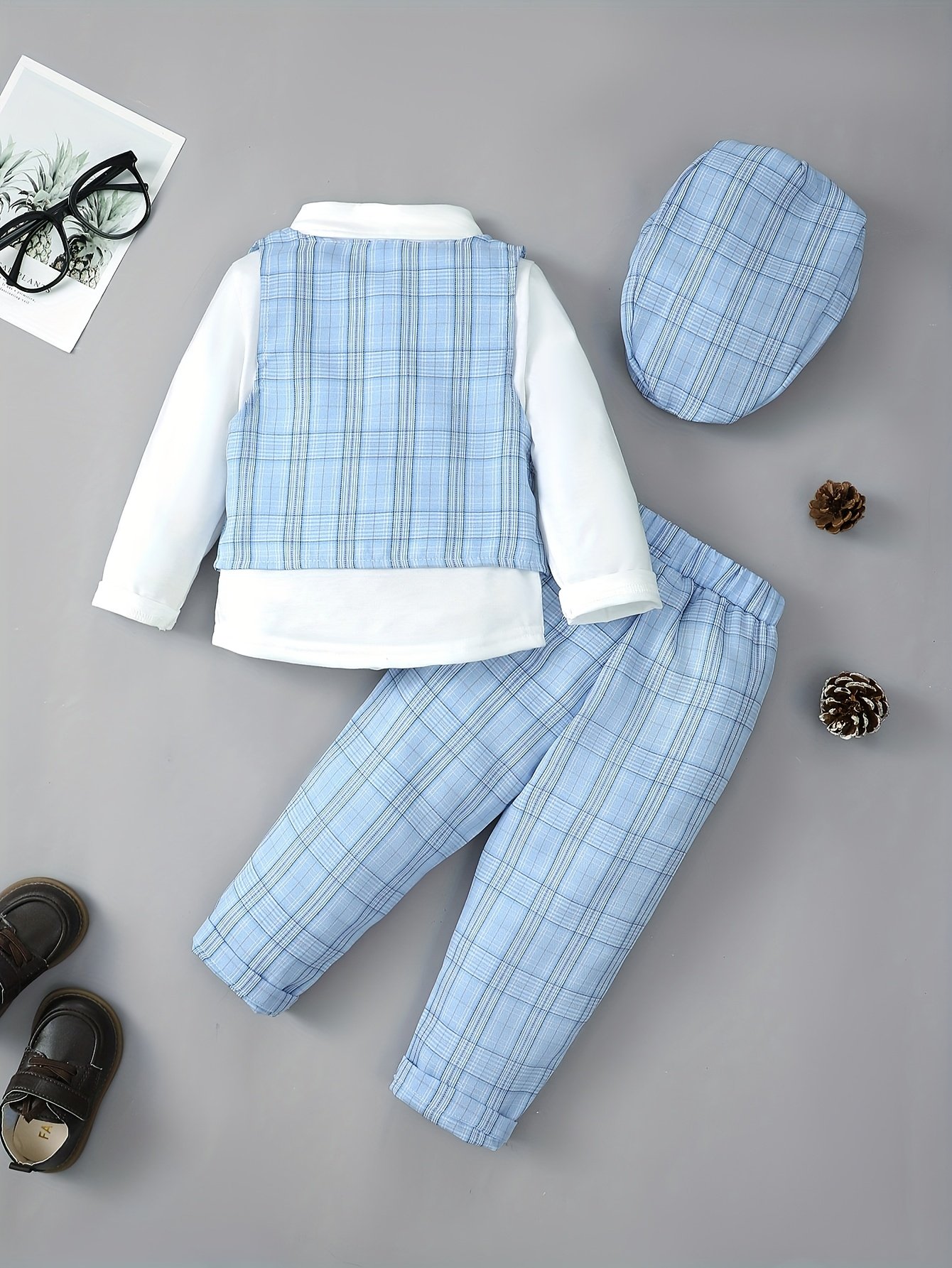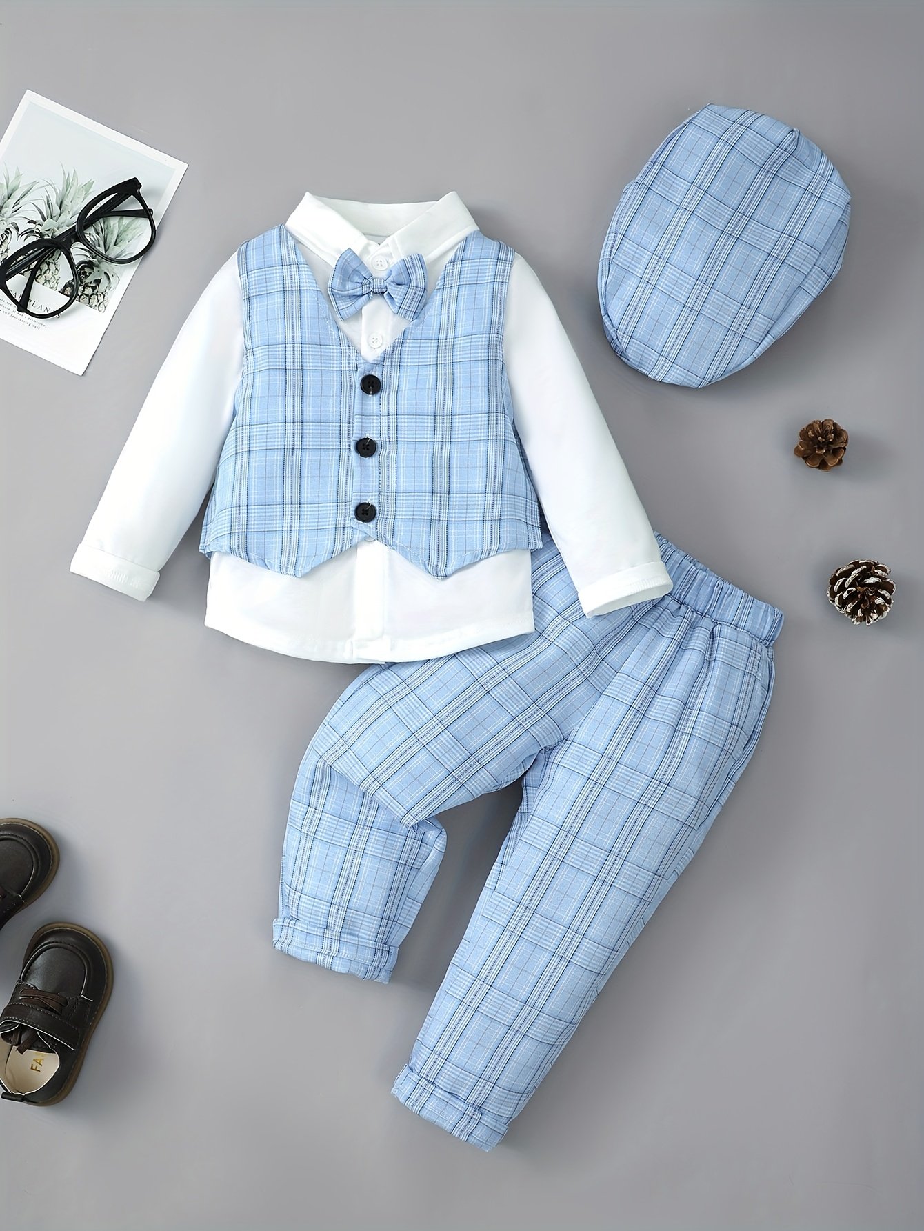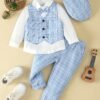 + Livraison de 12 à 17 jourschemise à nœud papillon à manches longues et pantalon et gilet et chapeau