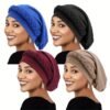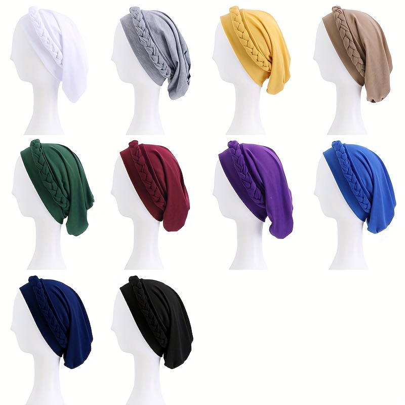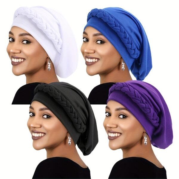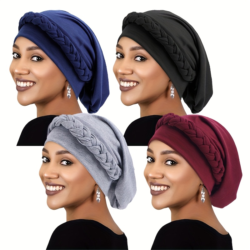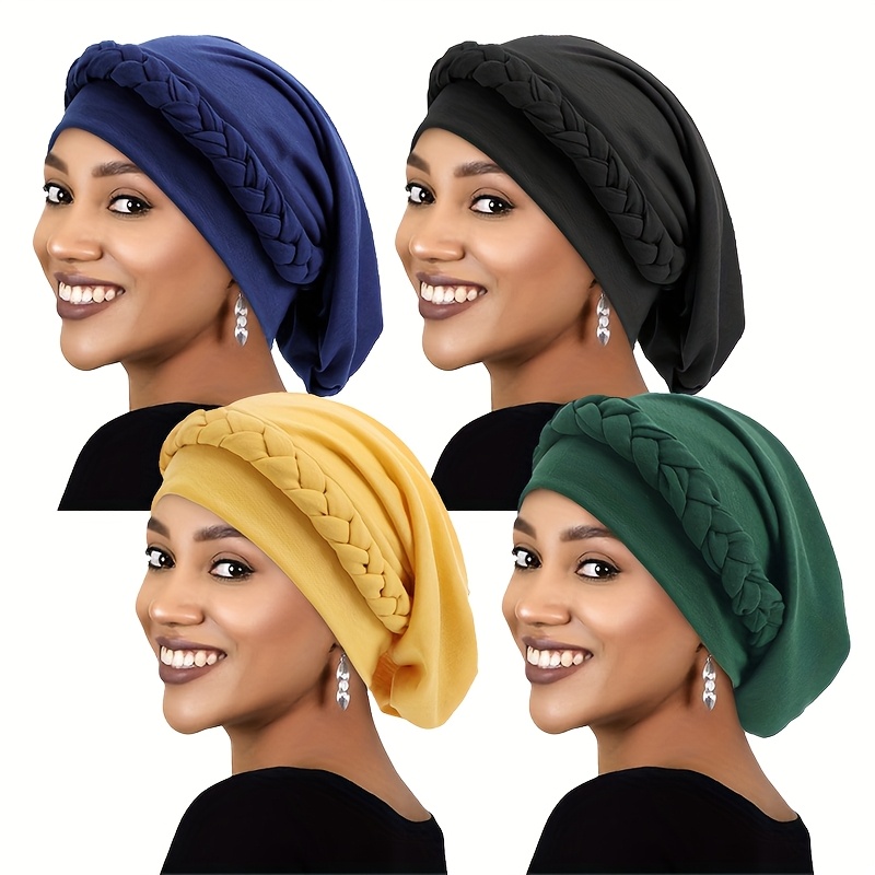 Ensemble de 4 turbans extensibles de couleur unie, style ethnique, chapeaux de chimiothérapie tressés et bonnets post-partum.