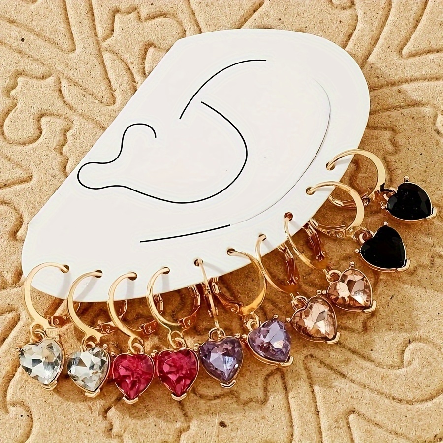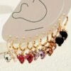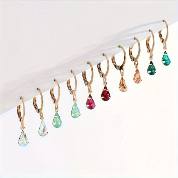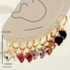 Ensemble de 5 paires de boucles d’oreilles style bohème avec pendentifs géométriques colorés en synthétique, en forme de goutte, rectangulaire ou cœur pour femmes | Fer et alliage, idéal pour le quotidien et les vacances