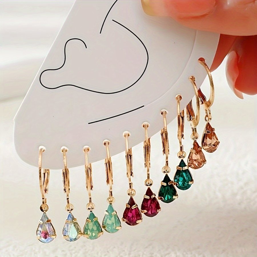Ensemble de 5 paires de boucles d’oreilles style bohème avec pendentifs géométriques colorés en synthétique, en forme de goutte, rectangulaire ou cœur pour femmes | Fer et alliage, idéal pour le quotidien et les vacances