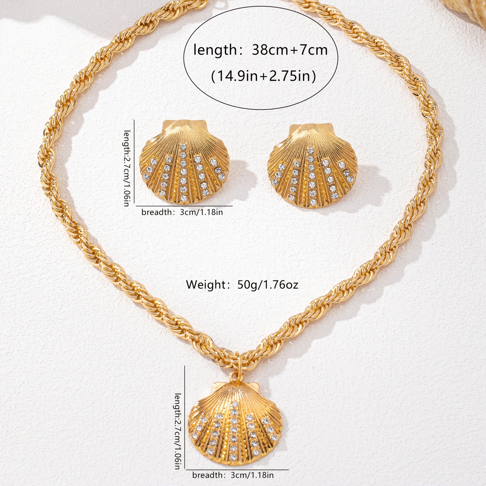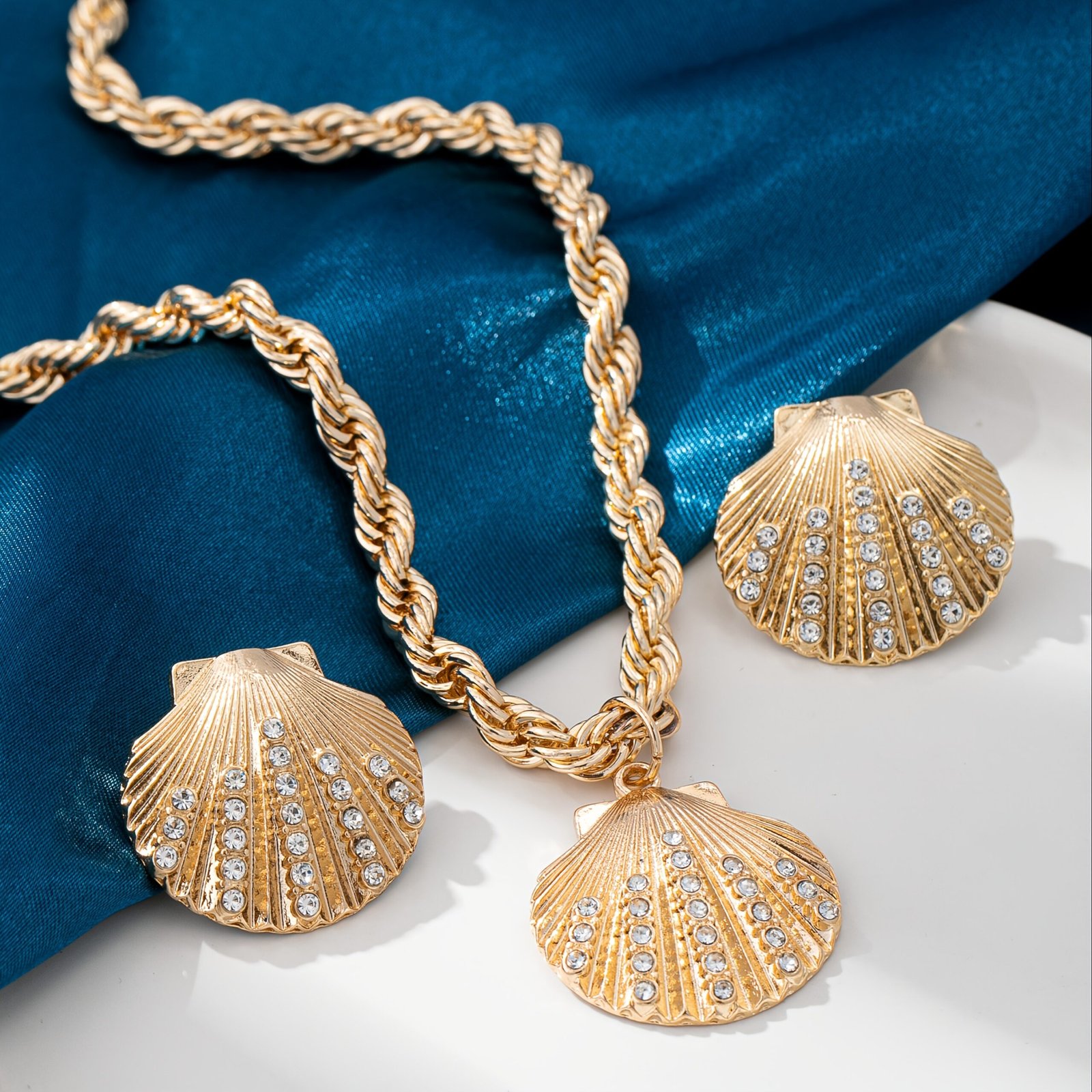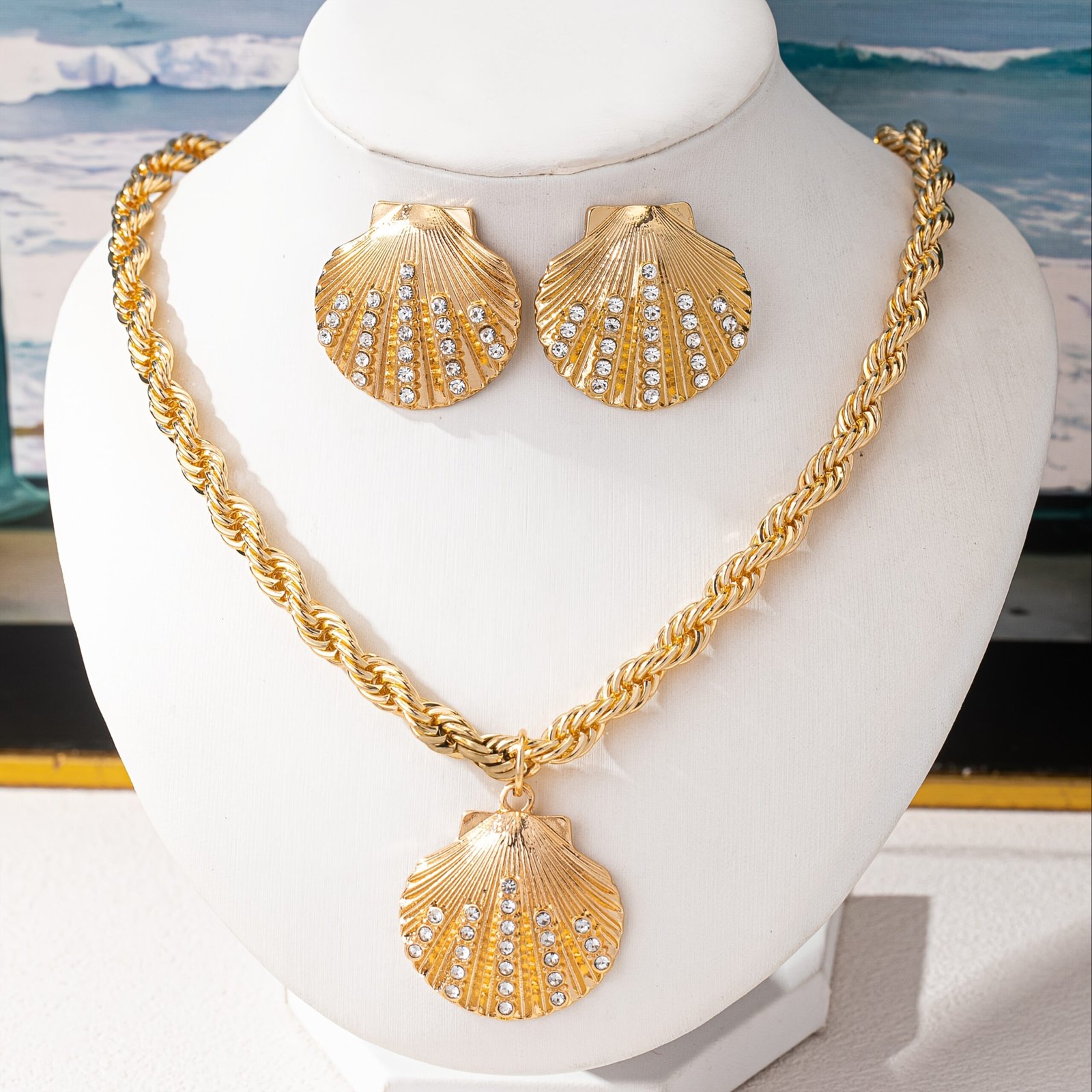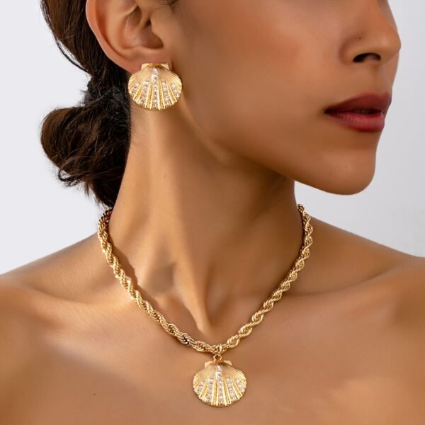 Ensemble de bijoux élégant avec coquille dorée et accents en cristal pour femmes