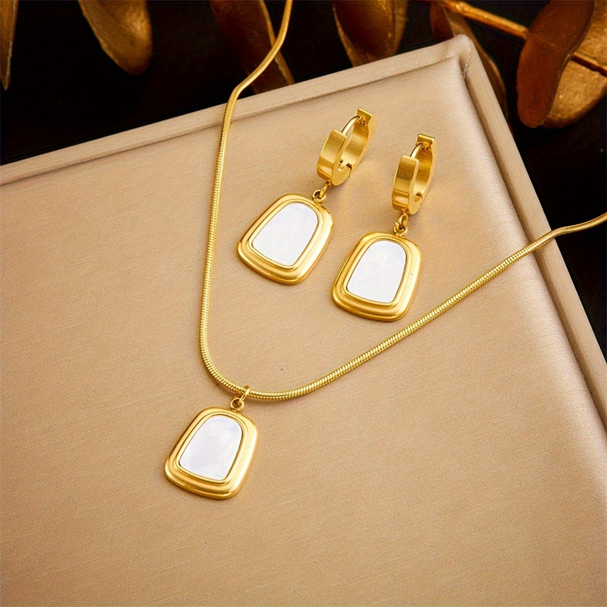 Ensemble de Bijoux pour Femme Collier et Boucles d’Oreilles en Acier Inoxydable Style Minimaliste Blanc Cadeau de Fête