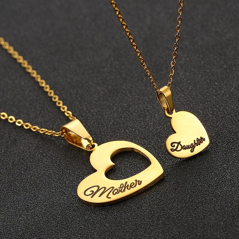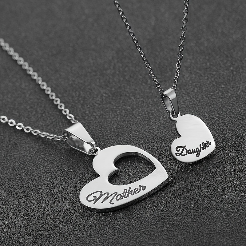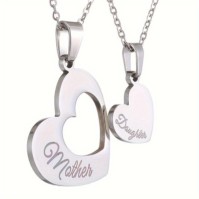 Ensemble de colliers pendentif cœur creux mère-fille, 2 pièces en acier inoxydable – cadeau d’anniversaire et de fête des mères pour maman et fille